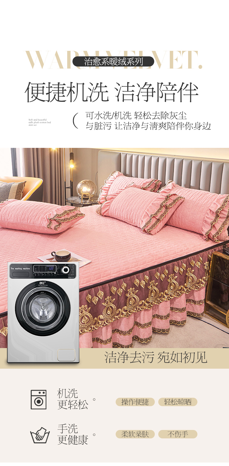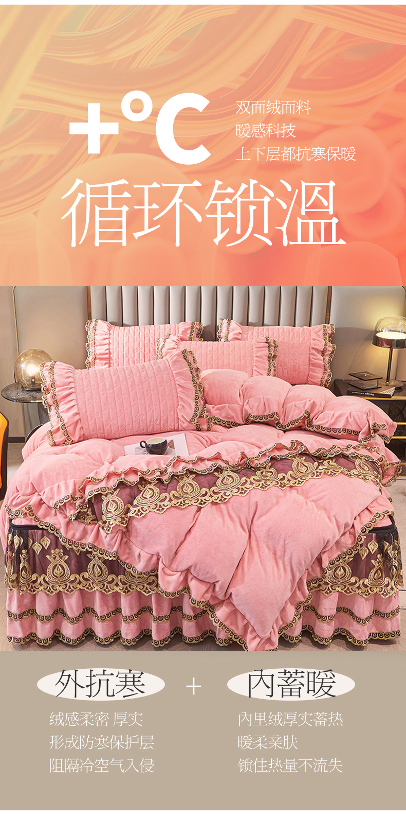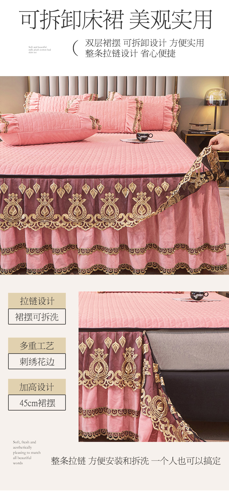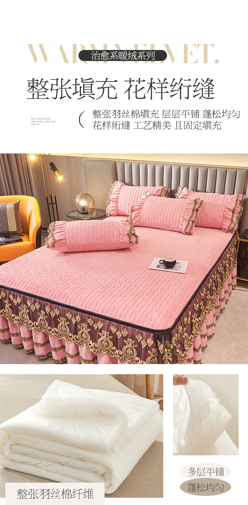 • 91家纺网 家纺一手货源 找家纺 虹星家纺 2023新款牛奶绒夹棉蕾丝可拆卸床裙系列四件套 梦幻巴黎 蜜玉