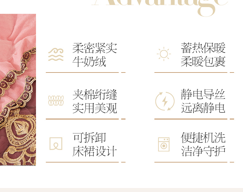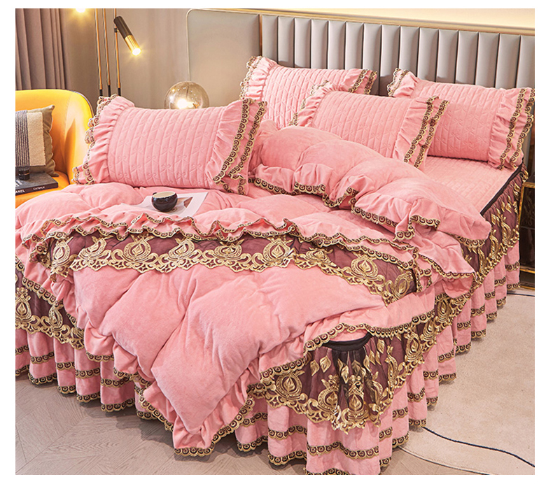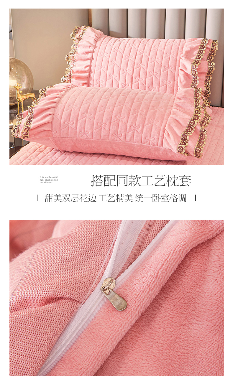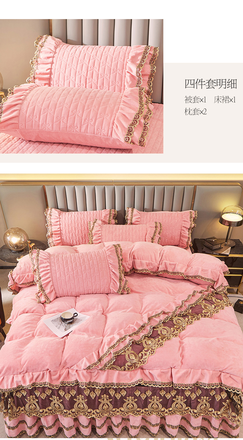虹星家纺 2023新款牛奶绒夹棉蕾丝可拆卸床裙系列四件套 梦幻巴黎 蜜玉