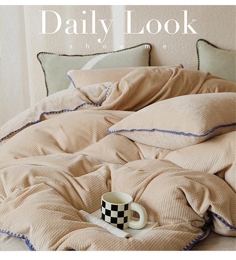 当前位置: 91家纺网 > 商品网购 > 床品套件 > 四件套 > 雕花绒四件套 > 新款华夫格立体雕花绒四件套-未央系列(英文版) 未央-米驼