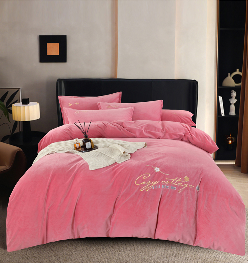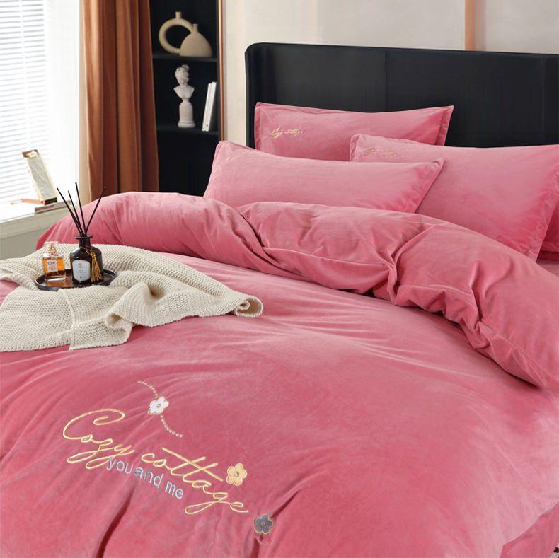 好欣怡 2024新款绣花宝宝绒四件套 红玉