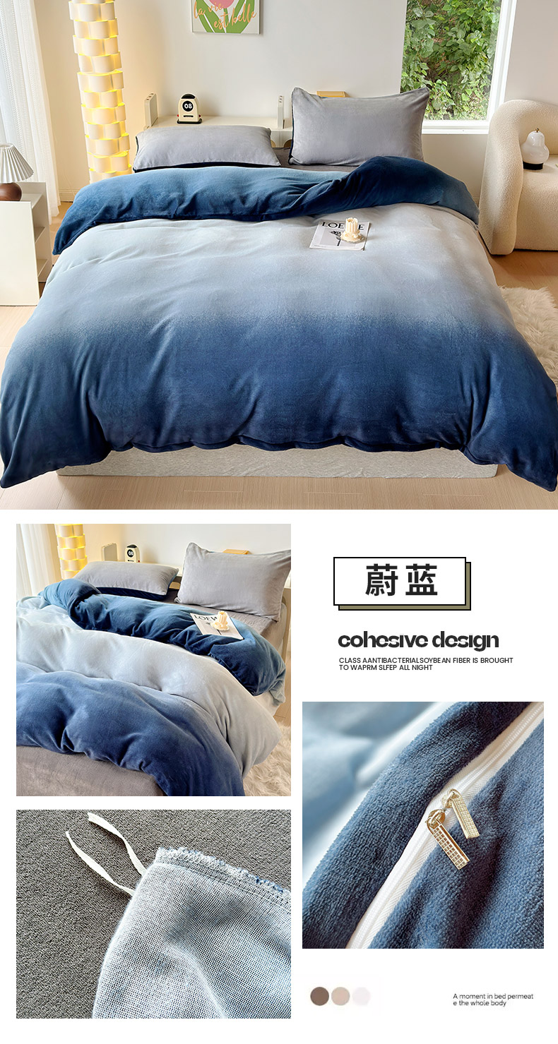 商品名称:怡家居 2023新款高克重牛奶绒印花四件套 蔚蓝