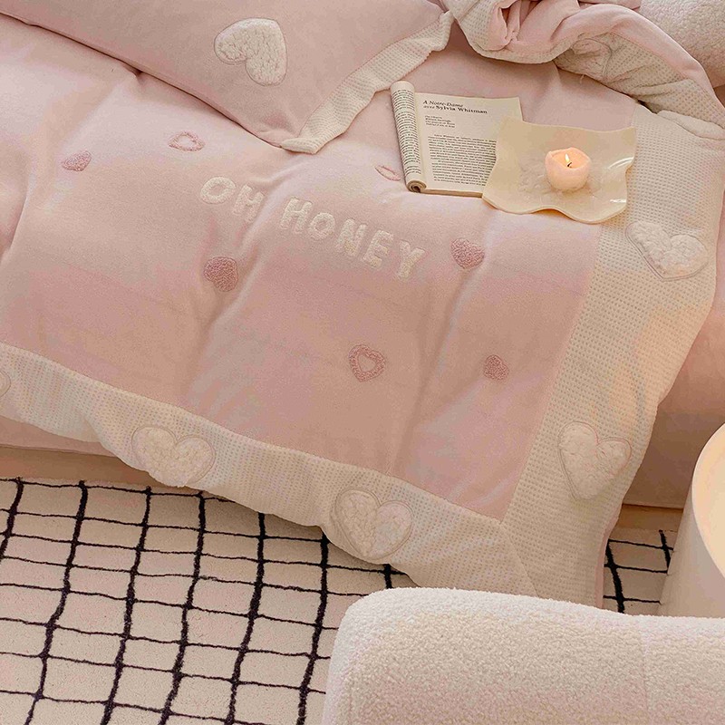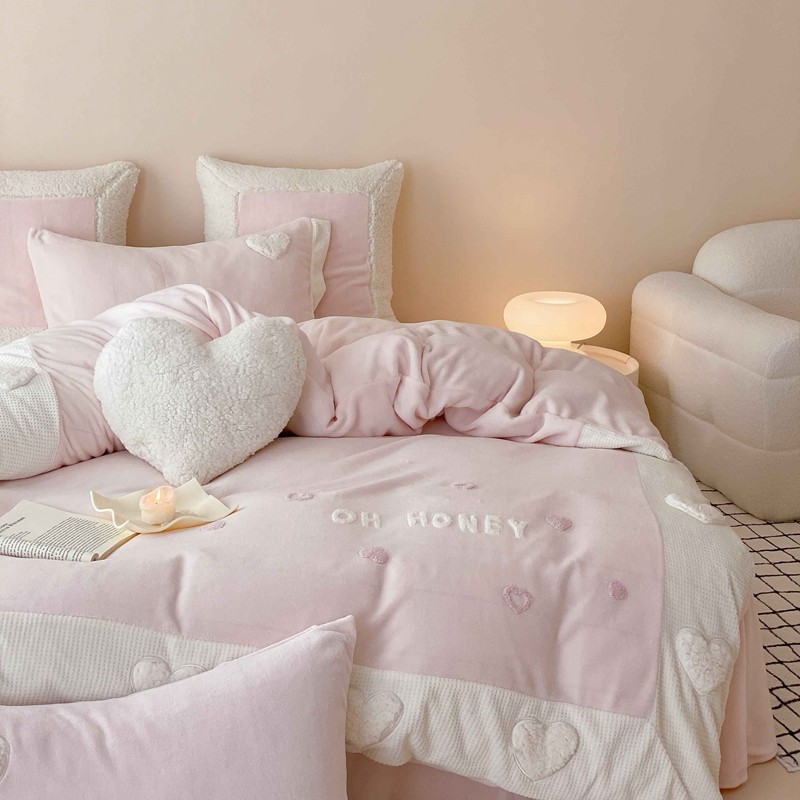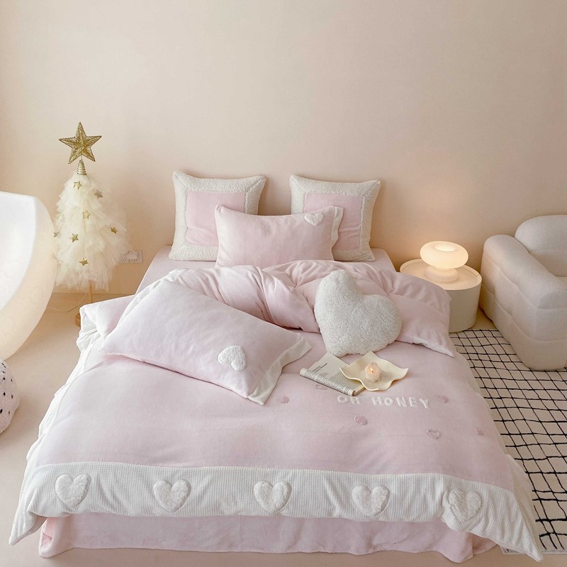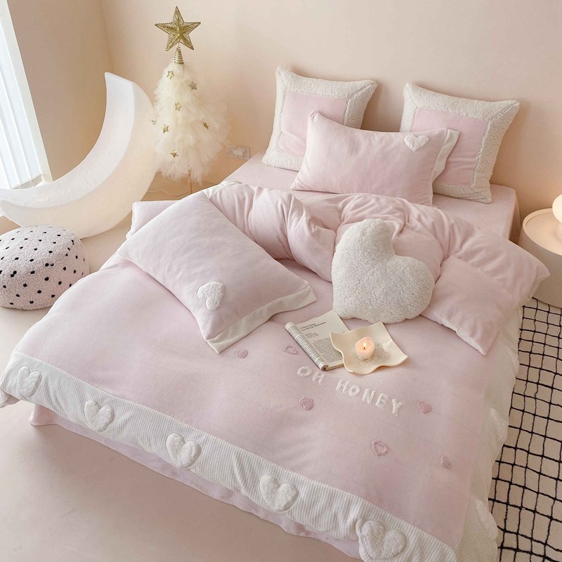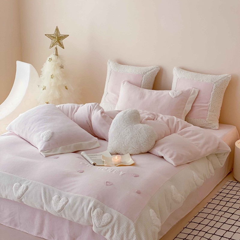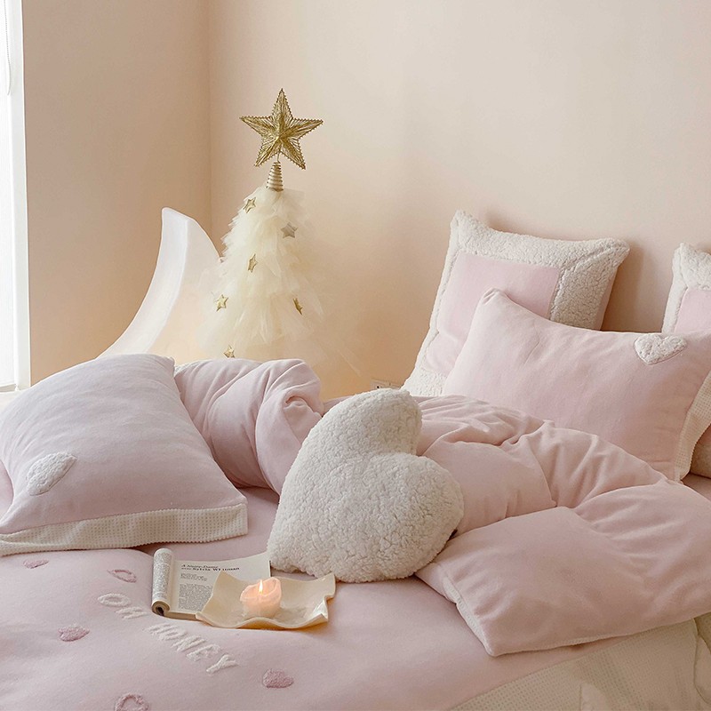 (总)星野 2023新款高克重牛奶绒羊羔绒贴布绣四件套-小甜心