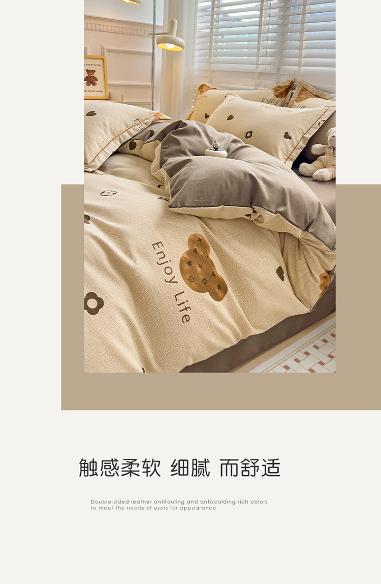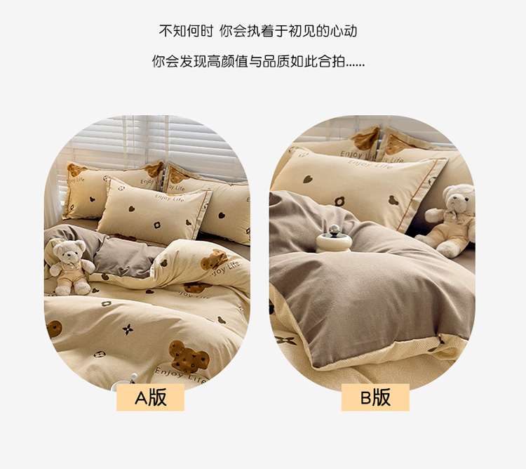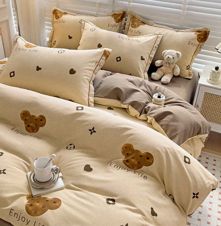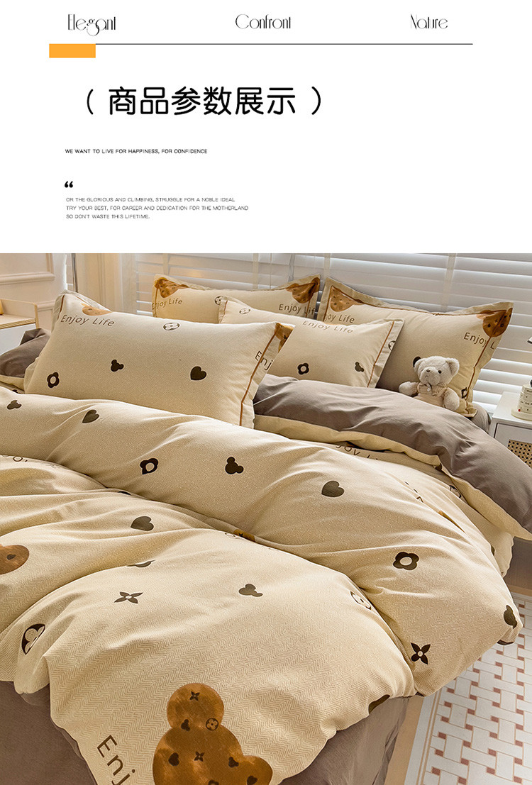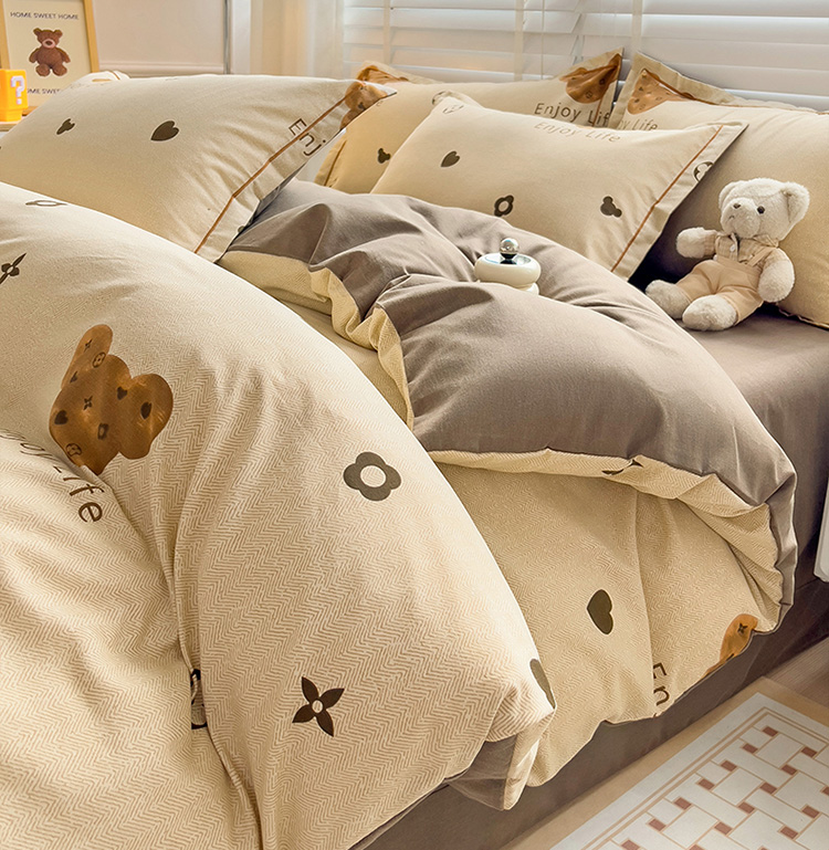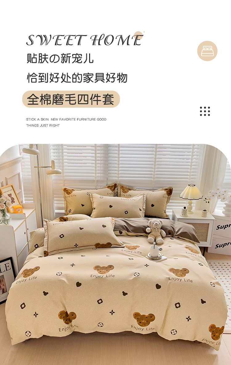 暖芯优选 2025新款小清新印花全棉磨毛四件套 登威熊