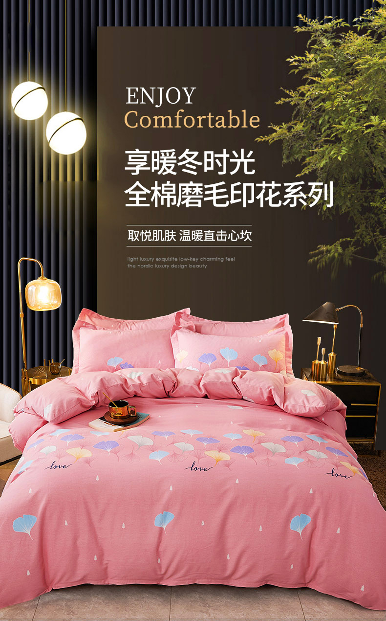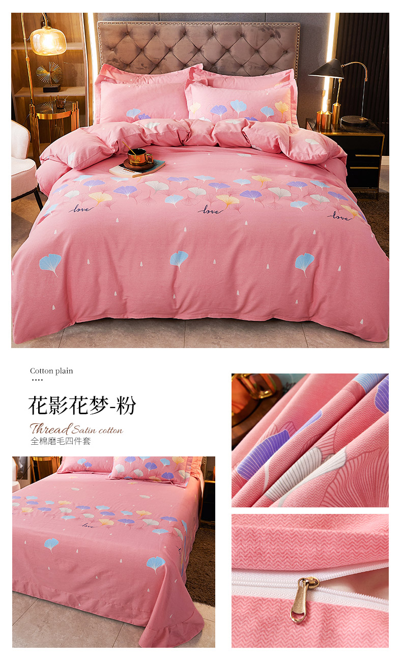 当前位置: 91家纺网 > 商品网购 > 床品套件 > 四件套 > 普通磨毛四件套 > 伊而梦 2023新款全棉磨毛印花四件套系列四件套 花影花梦-粉