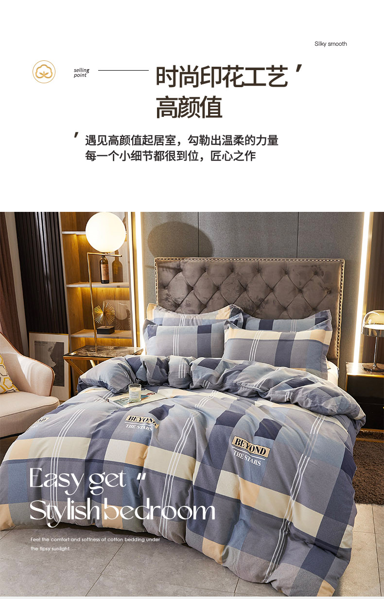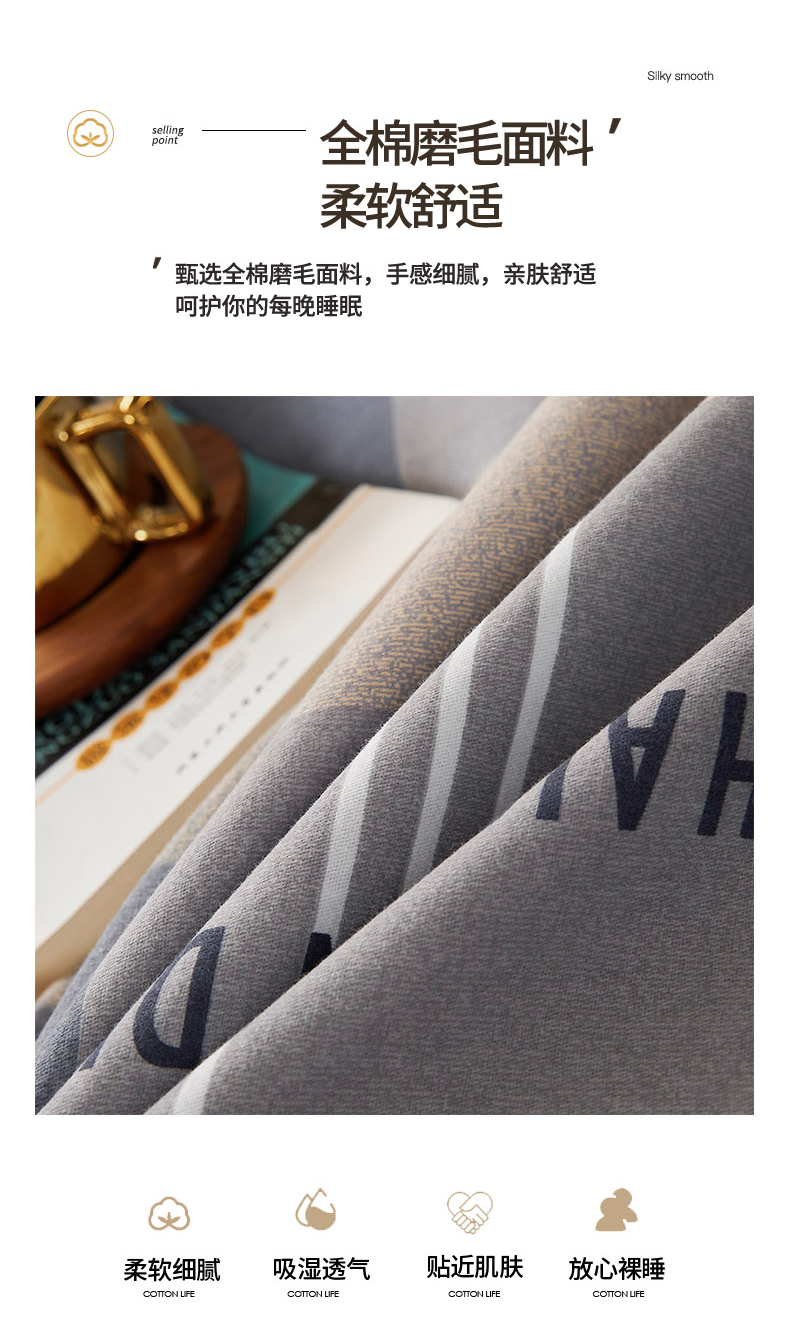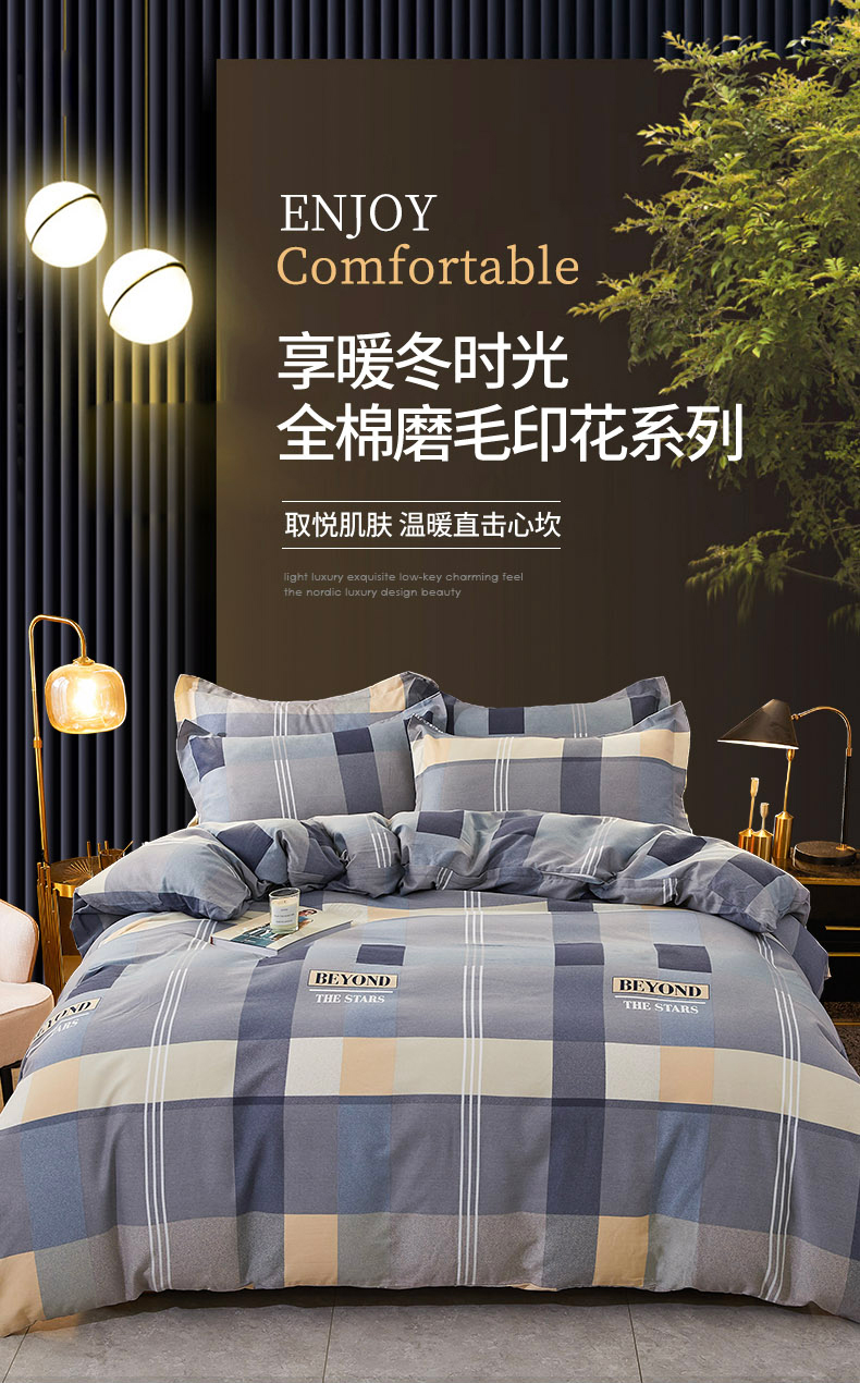 当前位置: 91家纺网 > 商品网购 > 床品套件 > 四件套 > 普通磨毛四件套 > 伊而梦 2023新款全棉磨毛印花四件套系列四件套 梵客-灰