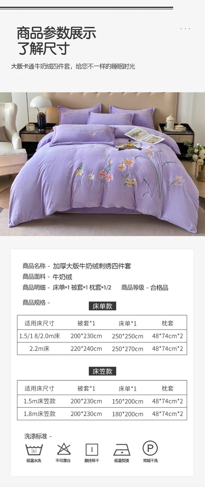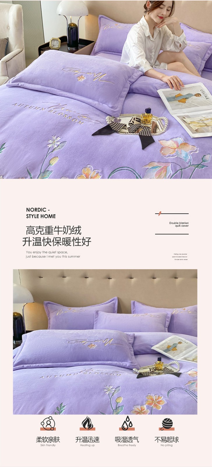 (总)漫布云2025秋冬新款全消光大版花卉平绣牛奶绒刺绣款四件套--绽放系列,绽放-艾玛橙, 绽放-豆沙红 ,绽放-樱花粉, 绽放-婴儿蓝 ,绽放-高级灰,绽放-梦幻紫