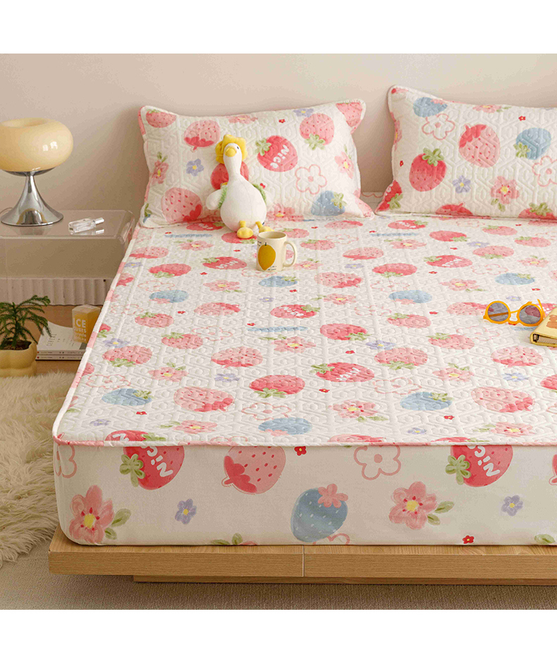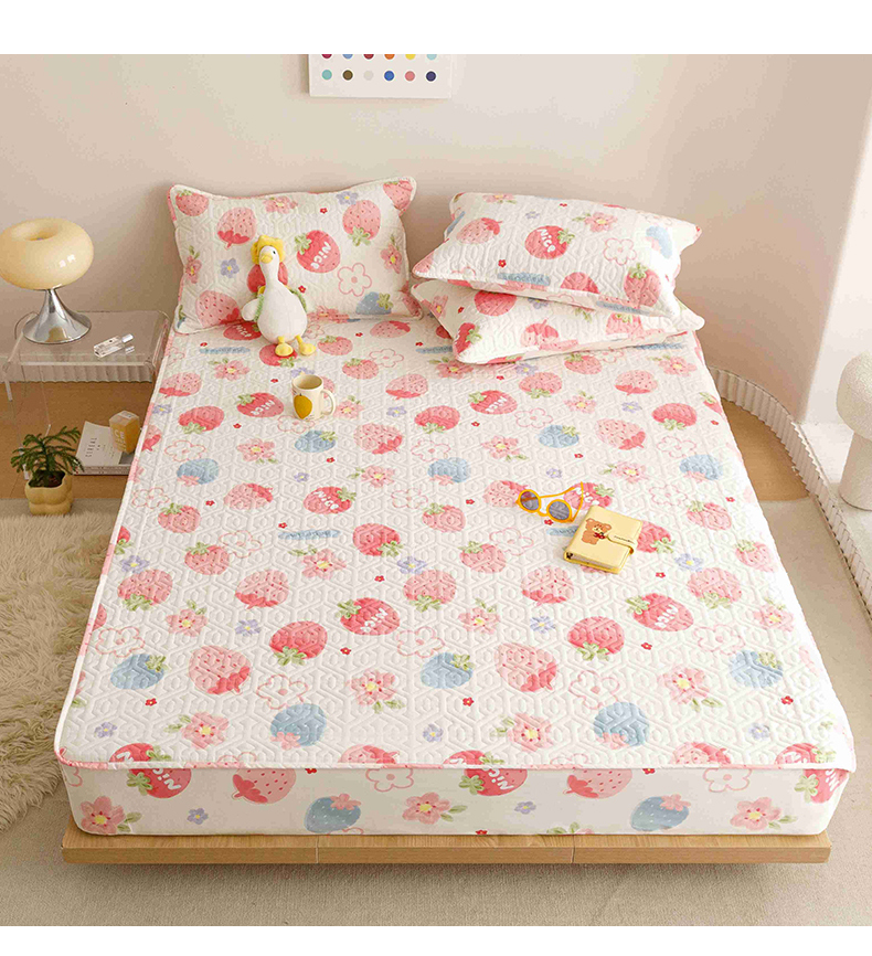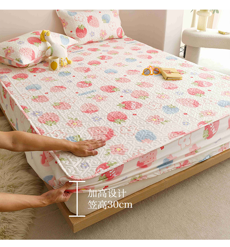 商品名称:忘忧草 2023新款A类全棉印花夹棉床笠 甜心布蕾