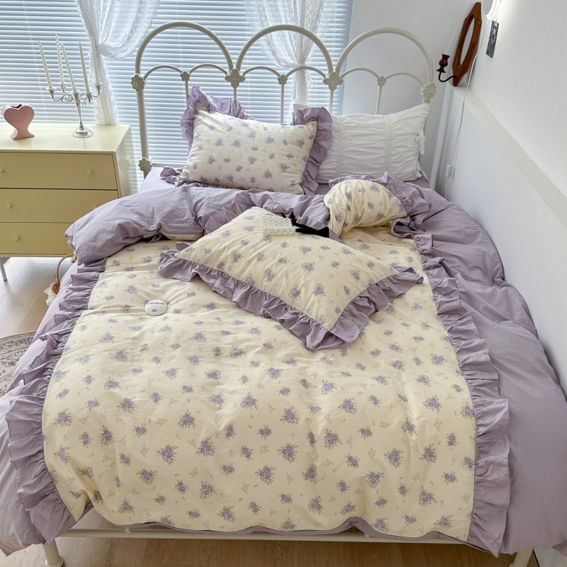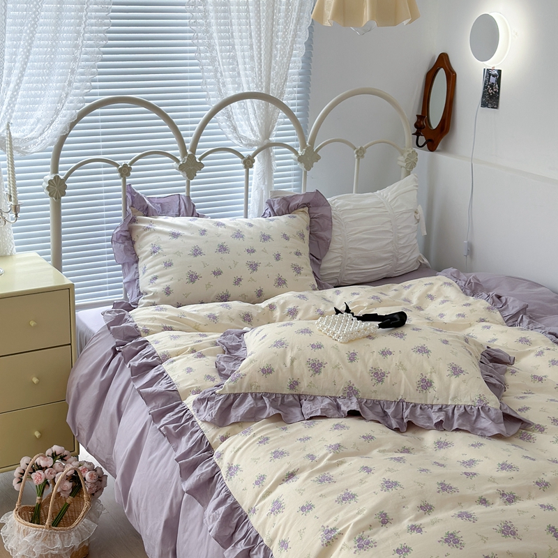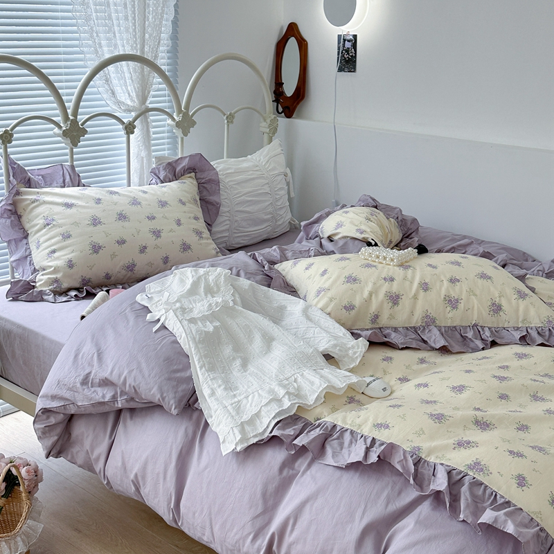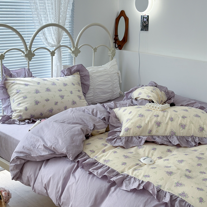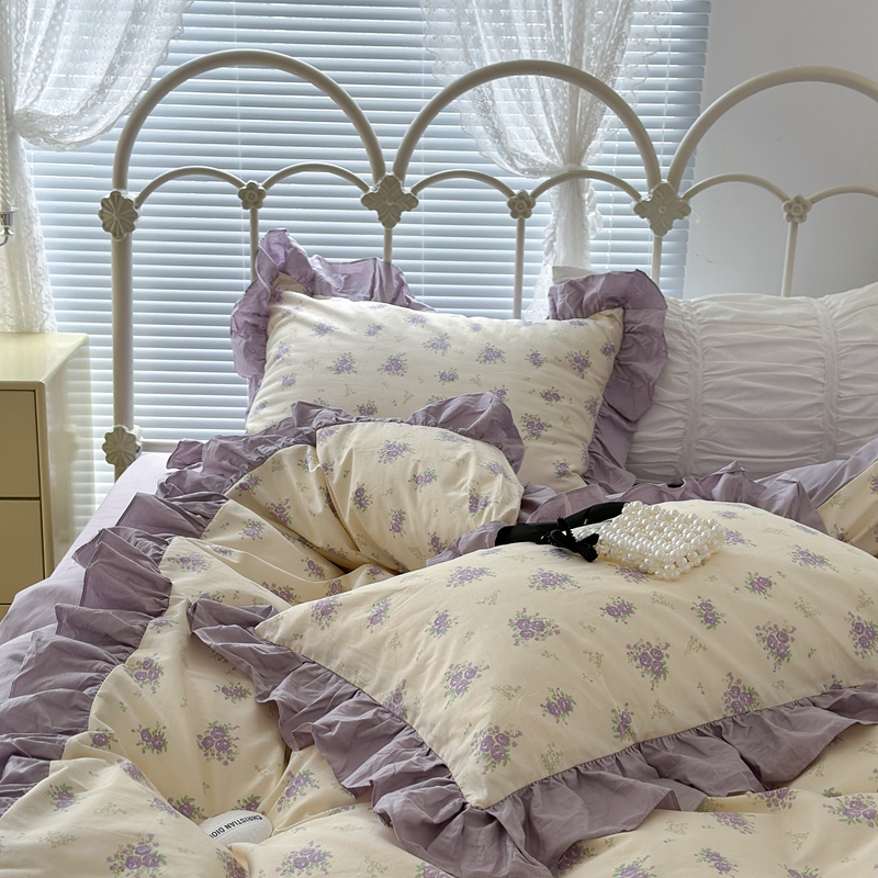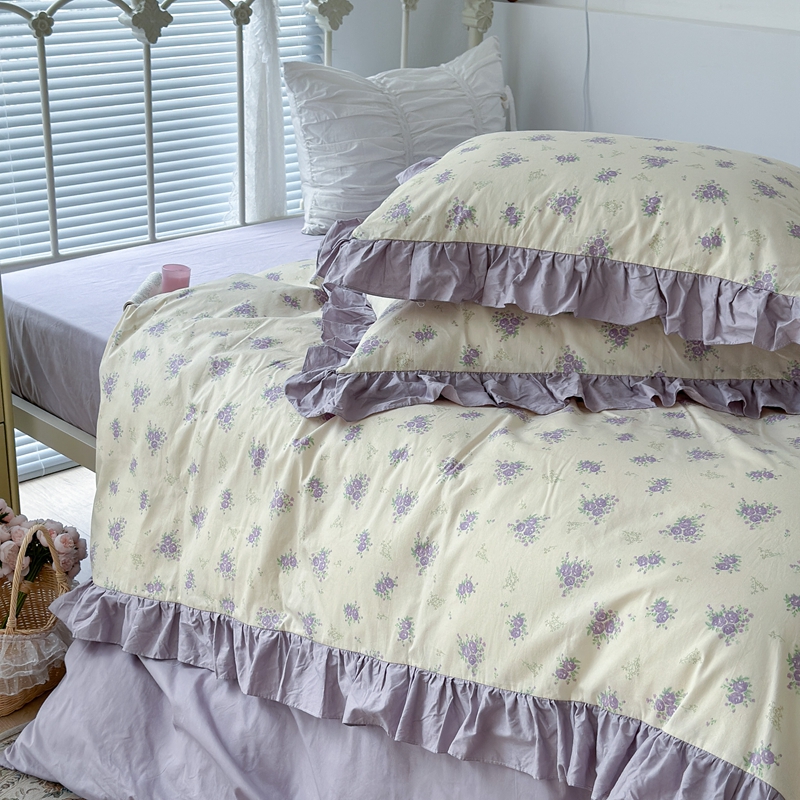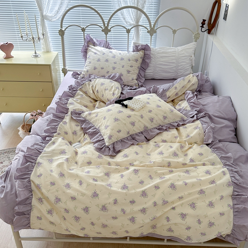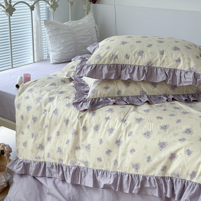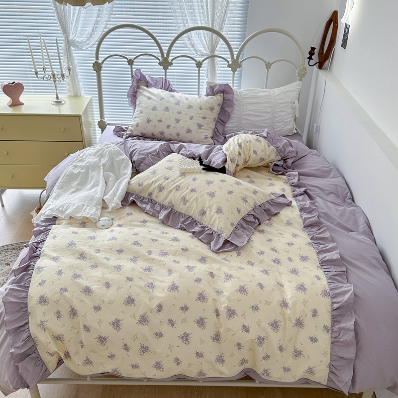 (总)昔可家纺 2023新款全棉小花系列四件套,柏林少女,小小的樱桃,紫色葡萄