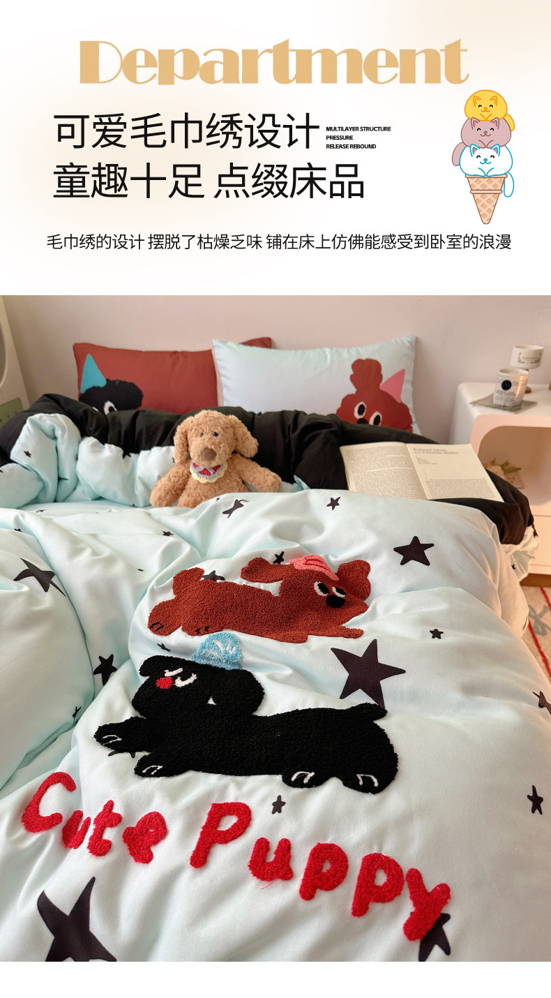 (总)花伞家居 2025新款毛巾绣印花双层纱四件套(提供买家秀),花蝴蝶,肥肥猫,表演的猫,调皮兔,浇花兔,可爱猫,幸福的家,音乐猫