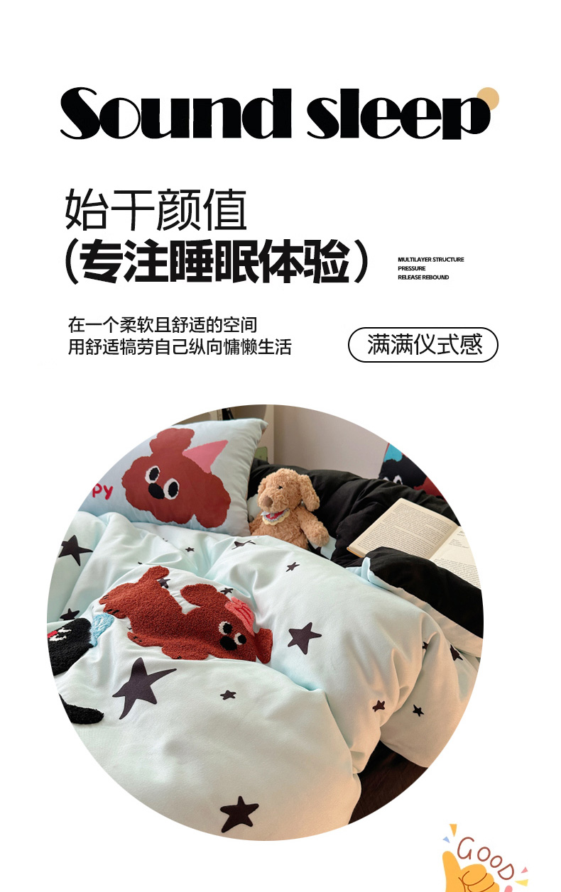 商品名称:(总) 花伞 2024新款毛巾绣卡通水洗棉磨毛四件套
