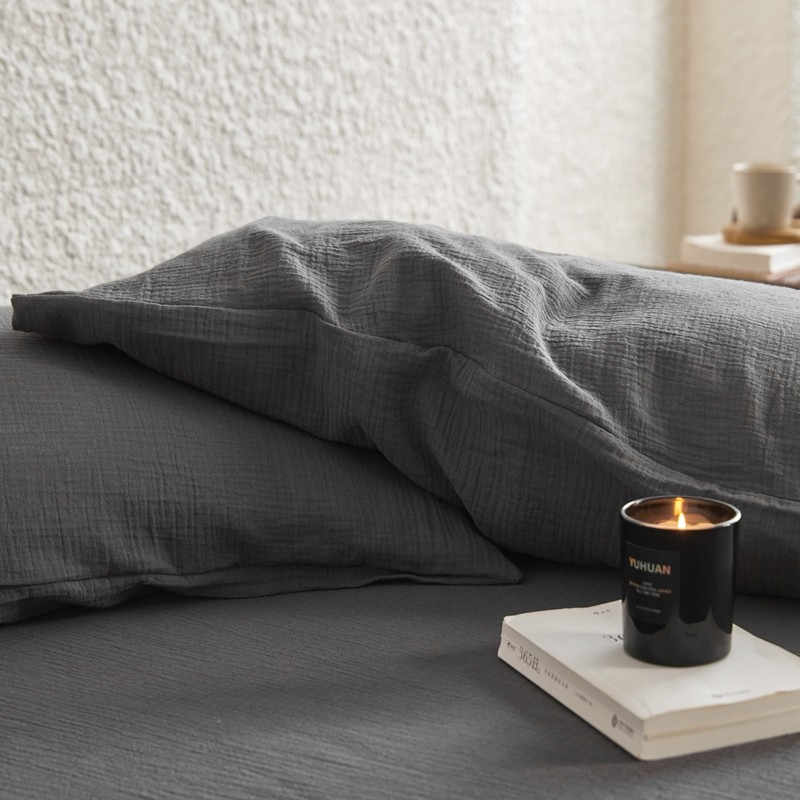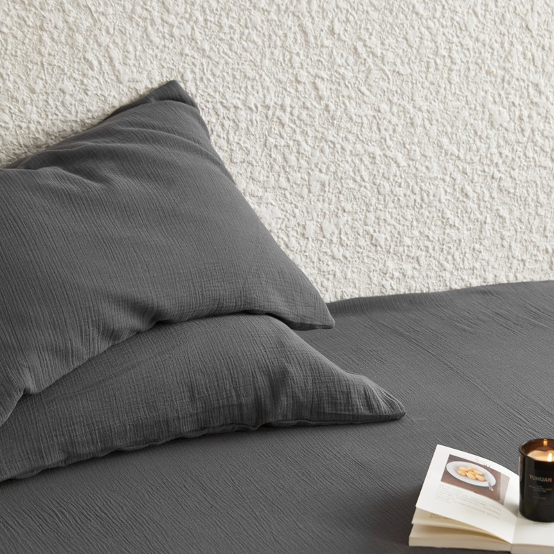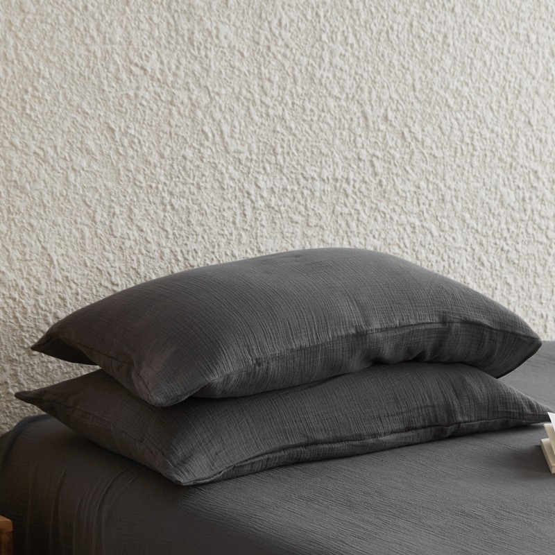 安莱生活2024新款绉纱美拉德色纯色单品枕套 黑巧