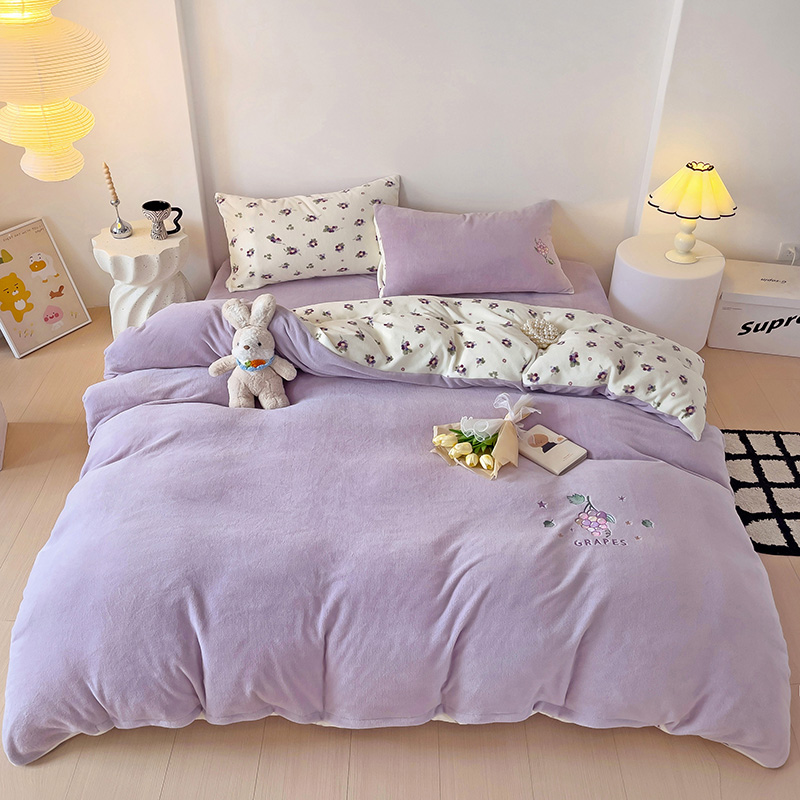 乐童家纺 2024新款直播热款高克重牛奶绒呆萌小刺绣系列四件套 葡提
