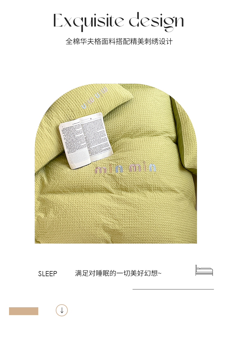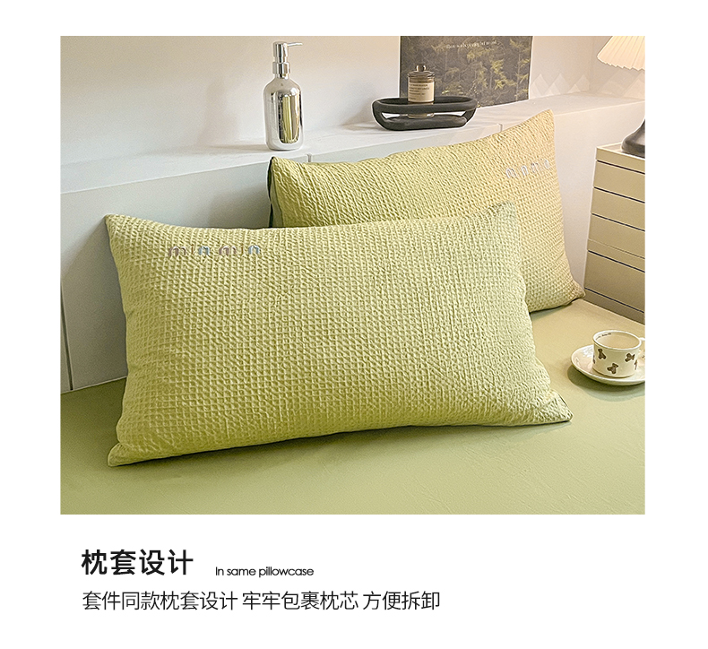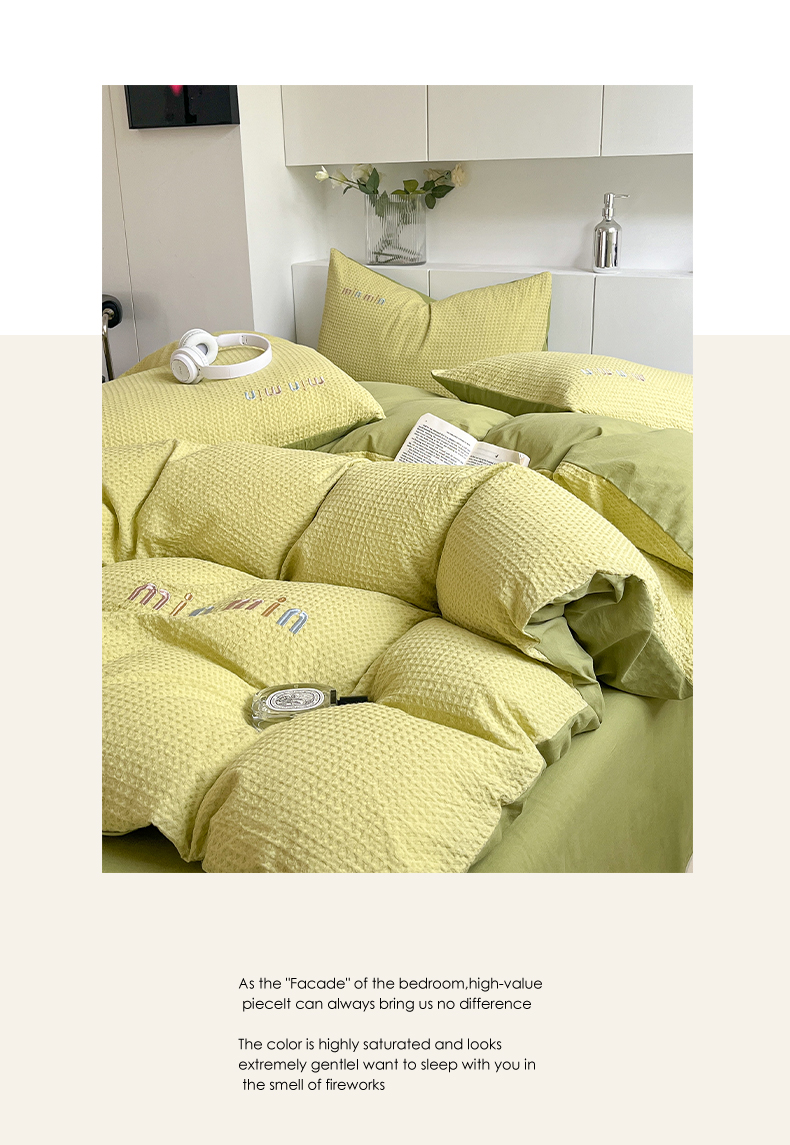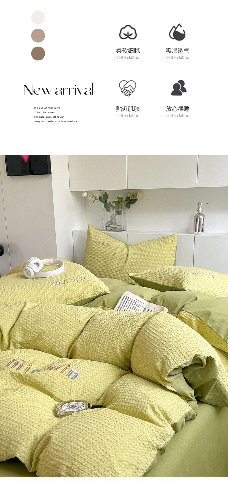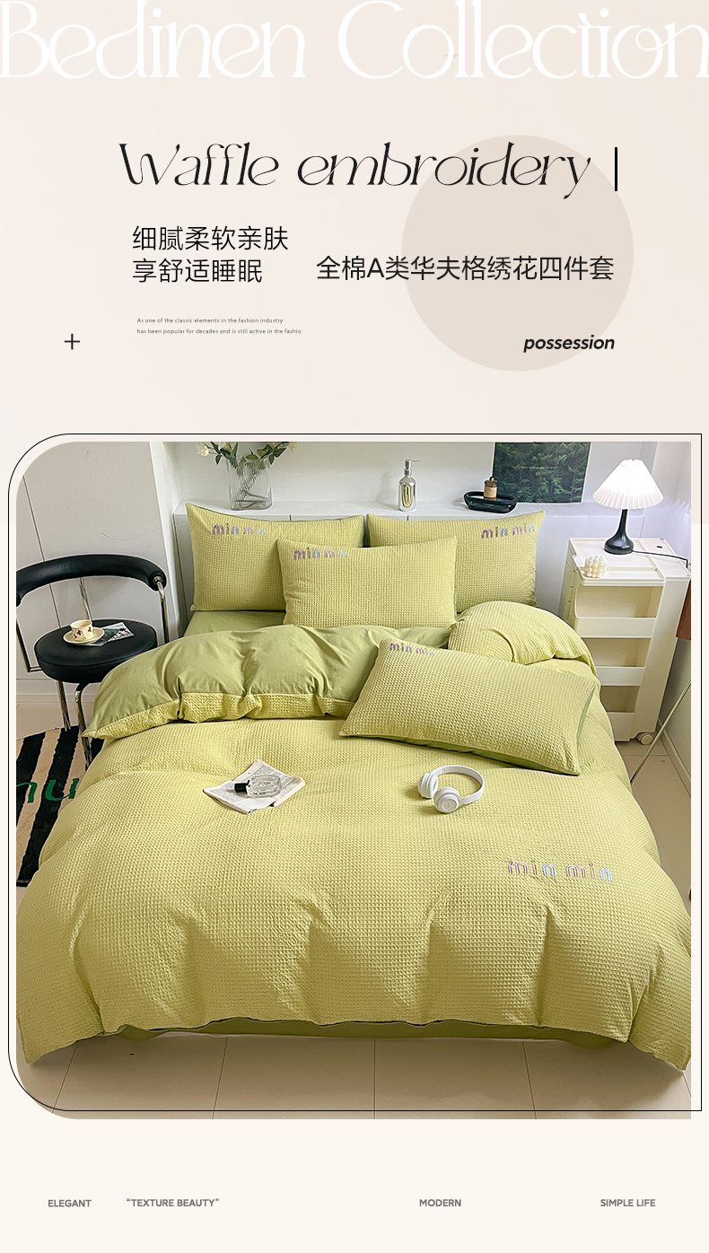 商品名称:雅居纺家纺 2024新款全棉华夫格绣花四件套 Min-浅绿