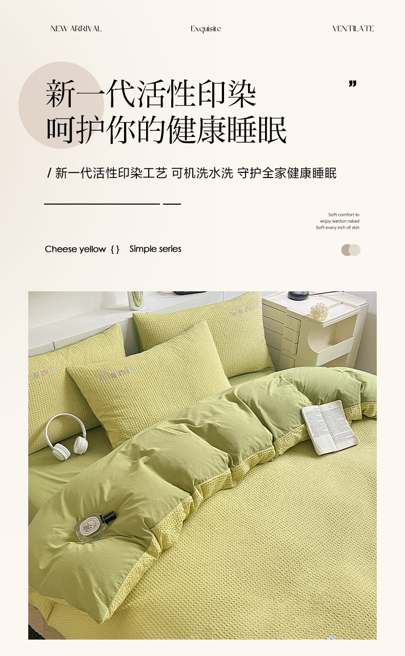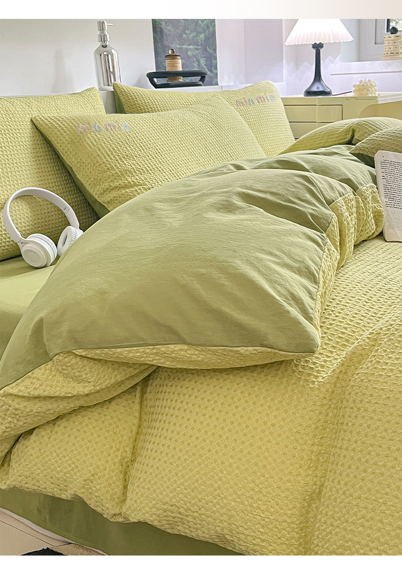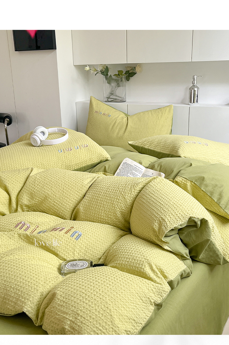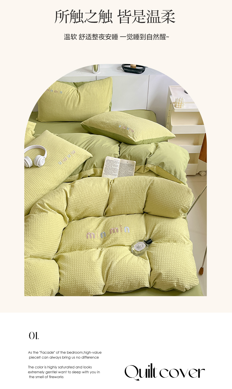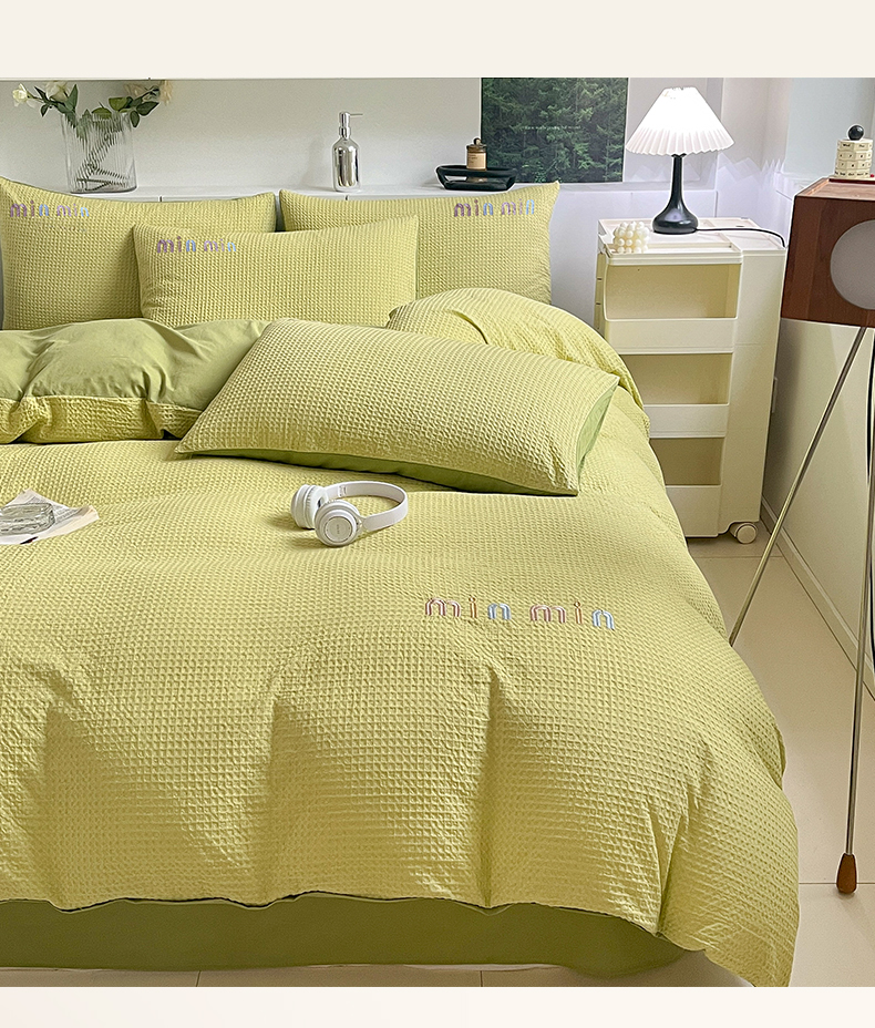 商品名称:雅居纺家纺 2024新款全棉华夫格绣花四件套 Min-浅绿