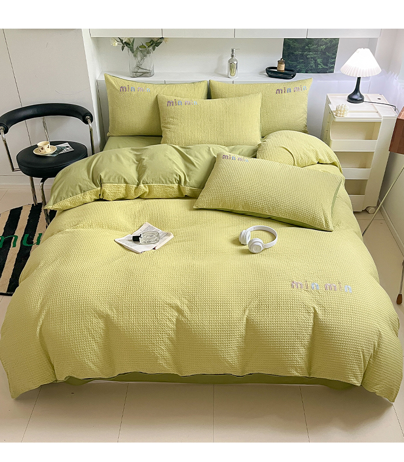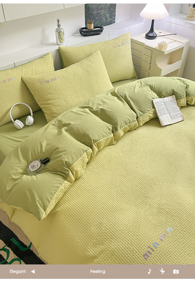 雅居纺家纺 2024新款全棉华夫格绣花四件套 Min-浅绿