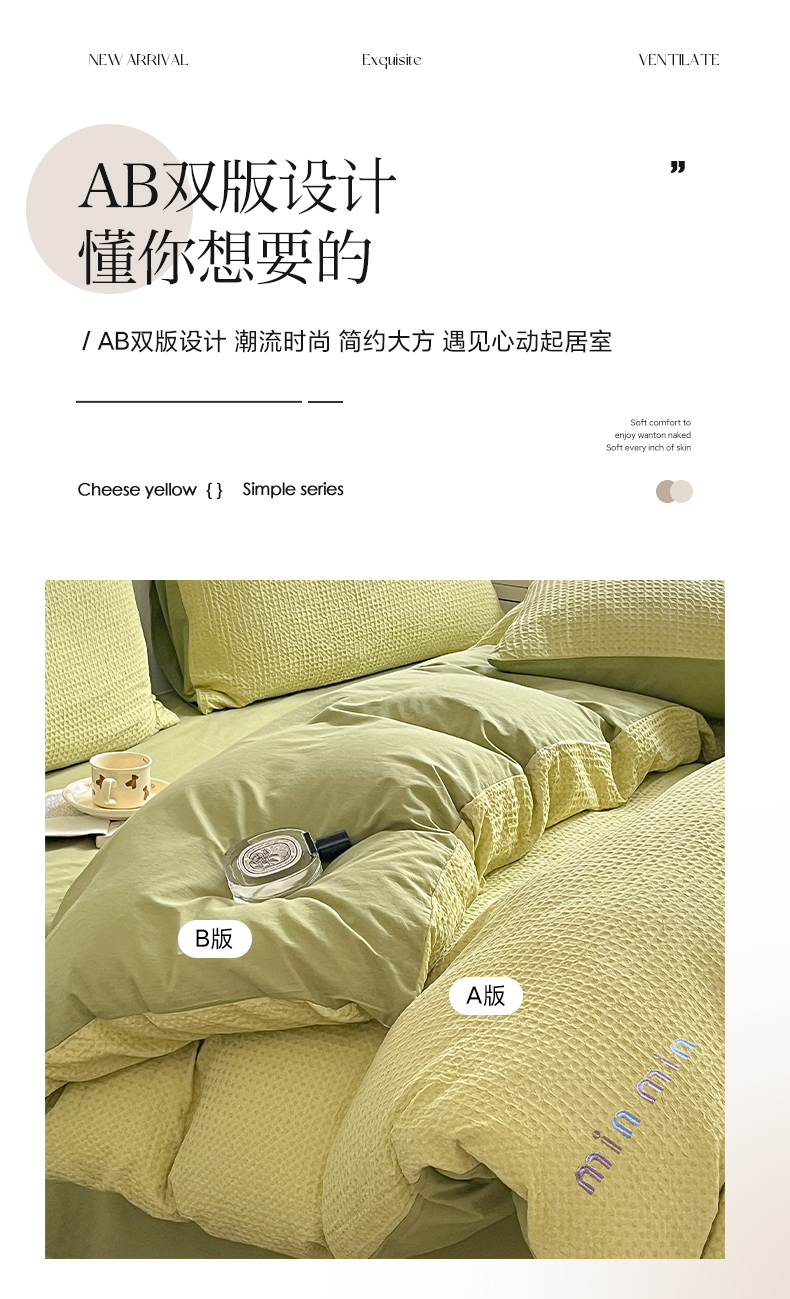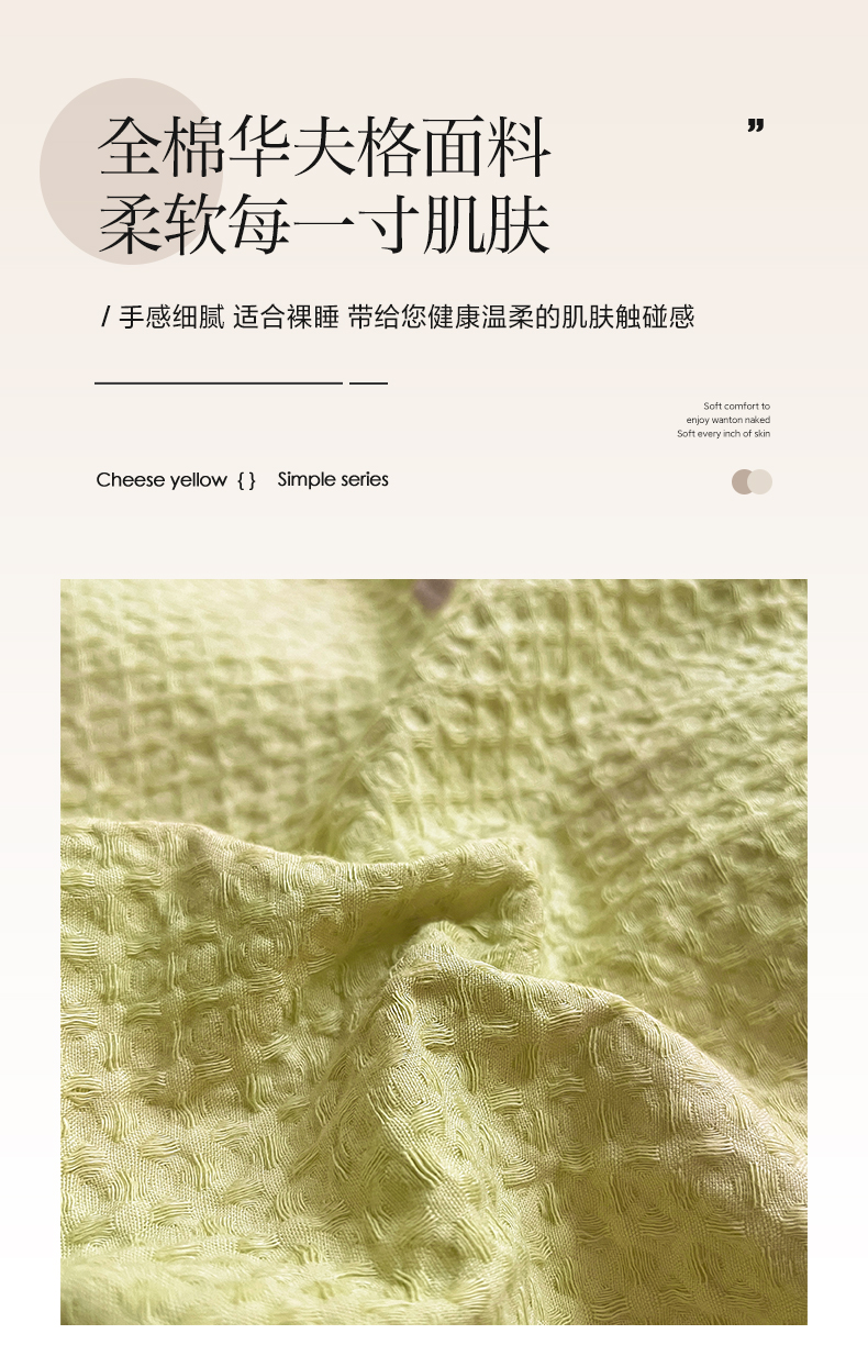 (总)雅居纺家纺 2022新款全棉华夫格普通款四件套,焦糖,米驼,奶油白,柔粉,深灰,雾蓝,月灰