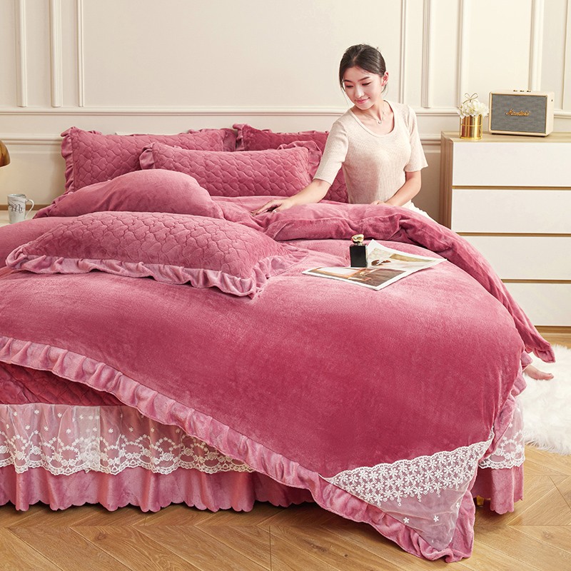 漫布云家纺2023新款浪漫花语秋冬保暖加厚牛奶绒夹棉床盖四件套