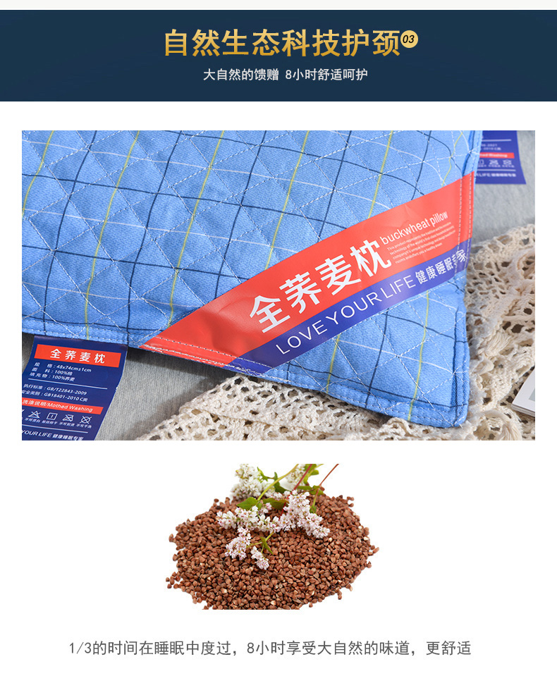 商品名称:(总)兴丝露枕芯 全棉荞麦枕芯48x74cm 全荞麦壳枕芯 全棉绗绣荞麦枕头 常规成人枕头 保健护颈枕 夏凉枕头
