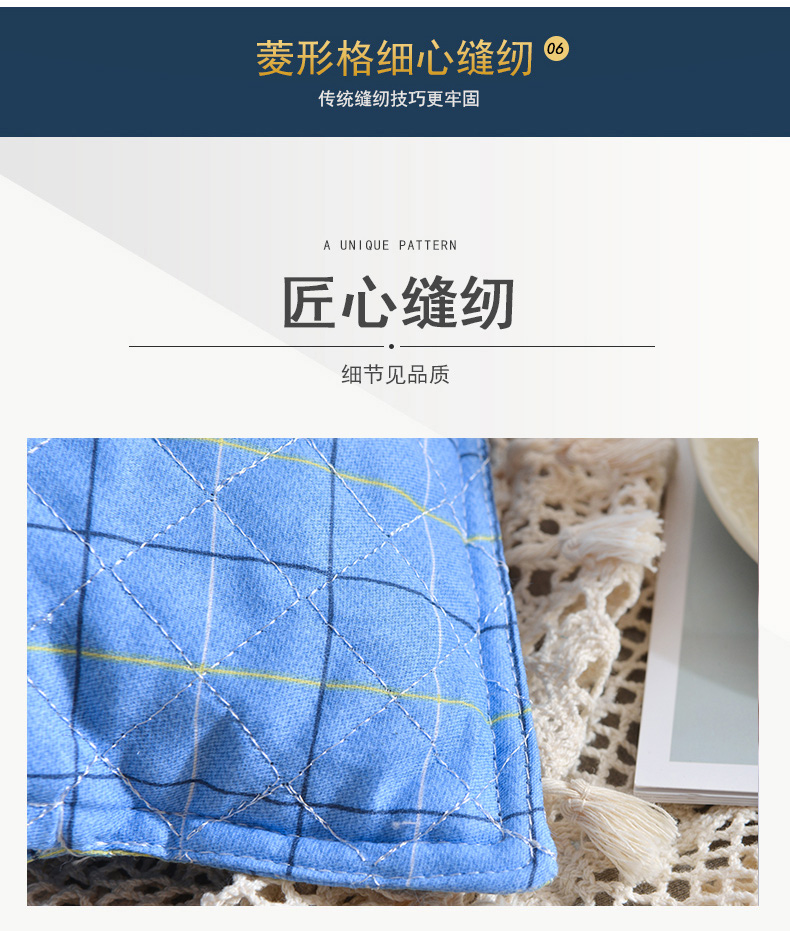 全棉绗绣荞麦枕蓝色大号48x74cm5.6斤