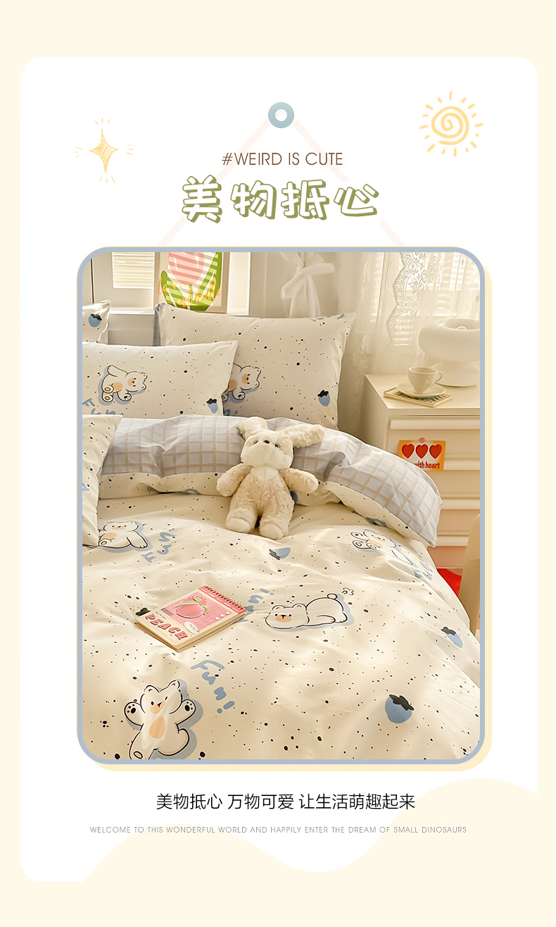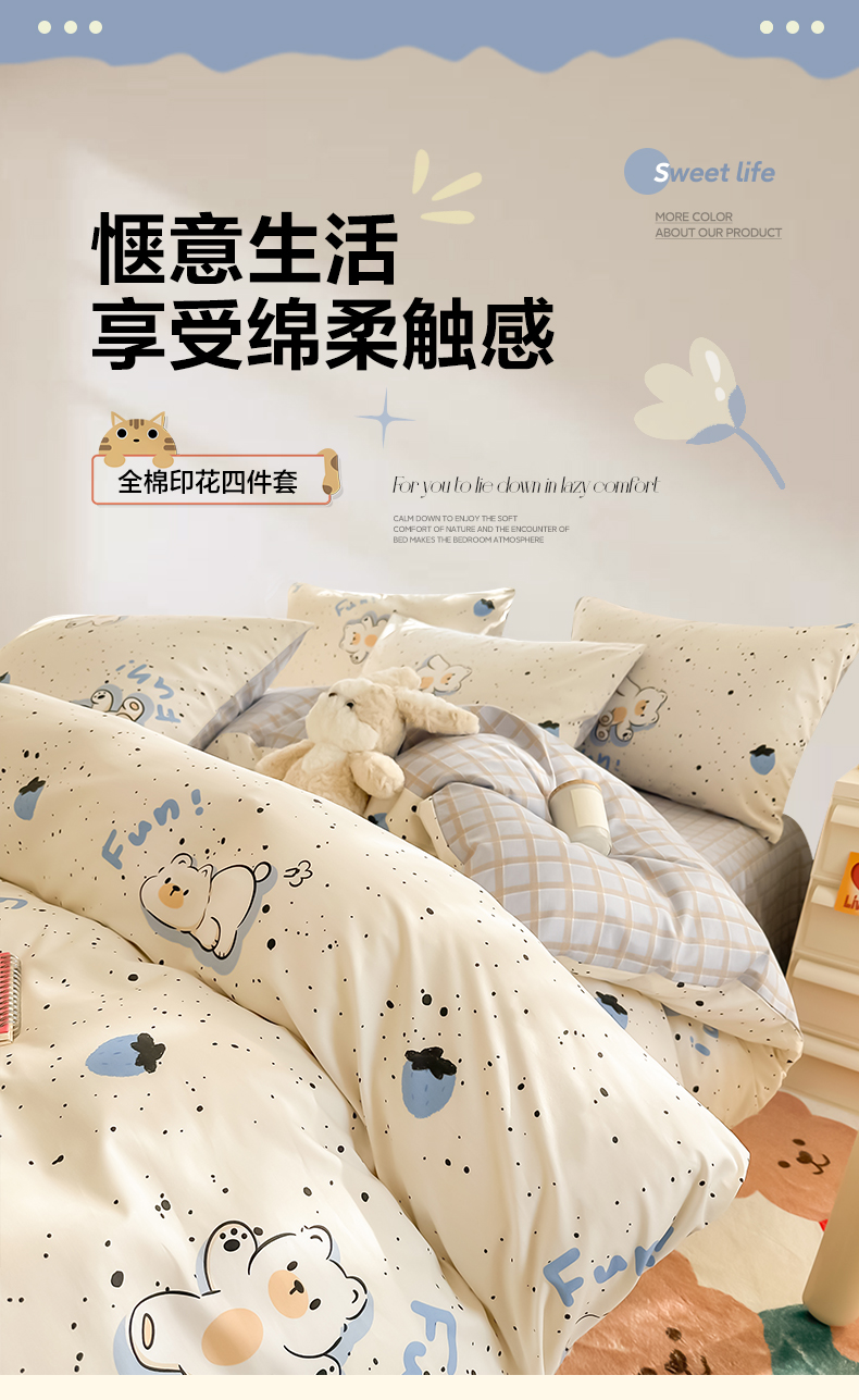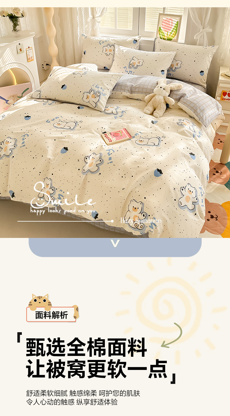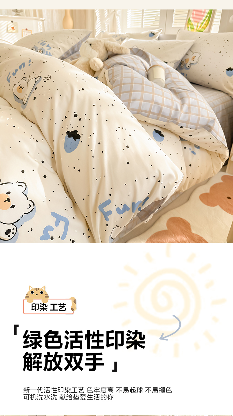 沐辰 2024新款13372全棉印花四件套(第二批) 蓝色能熊