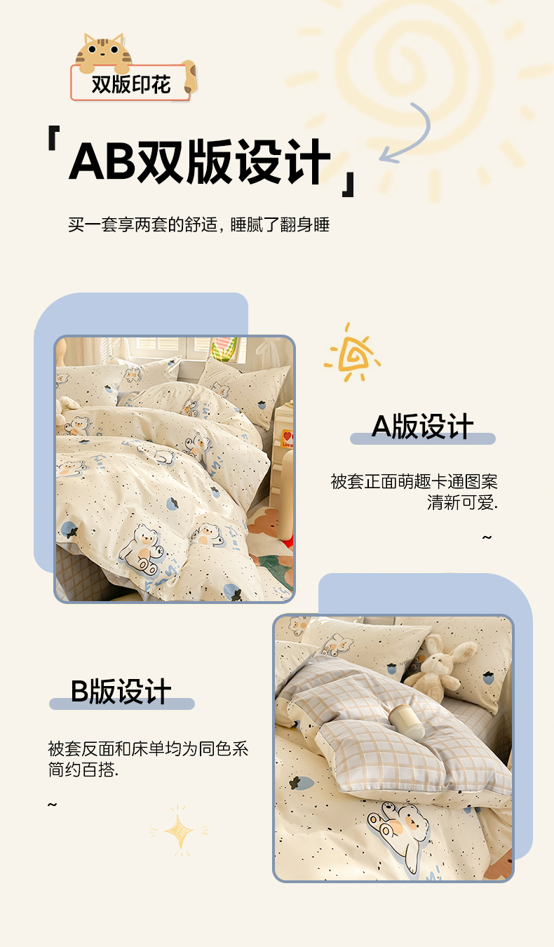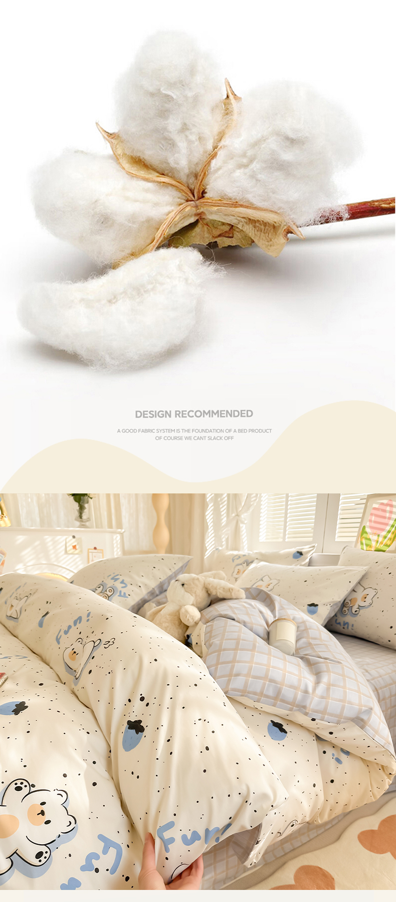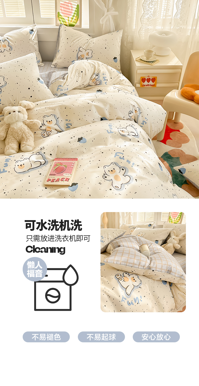 沐辰 2024新款13372全棉印花四件套(第二批) 蓝色能熊