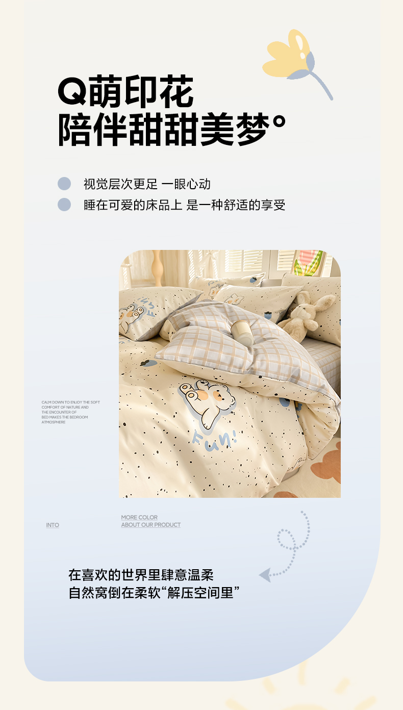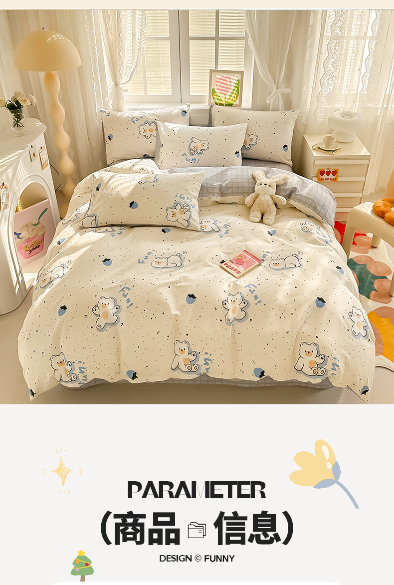 商品名称:沐辰 2024新款13372全棉印花四件套(第二批) 蓝色能熊