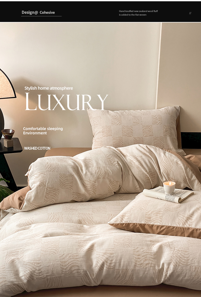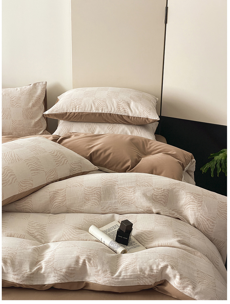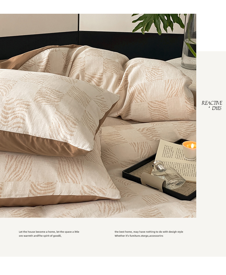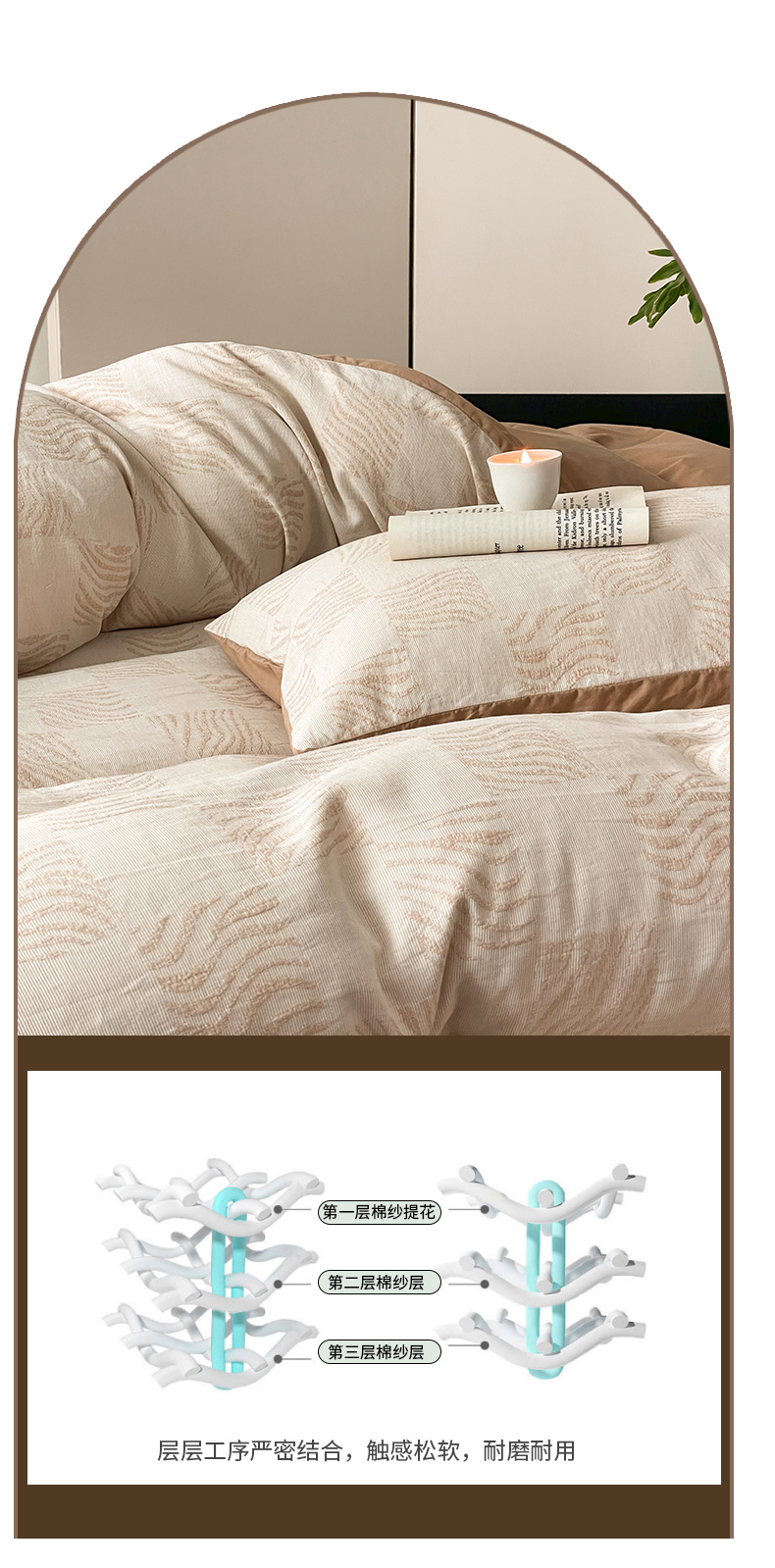 商品名称:苏木年华 2024新款A类全棉三层纱提花四件套--方格系列 方格咖