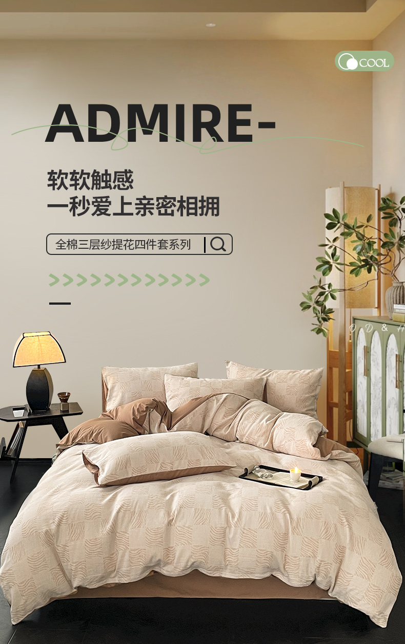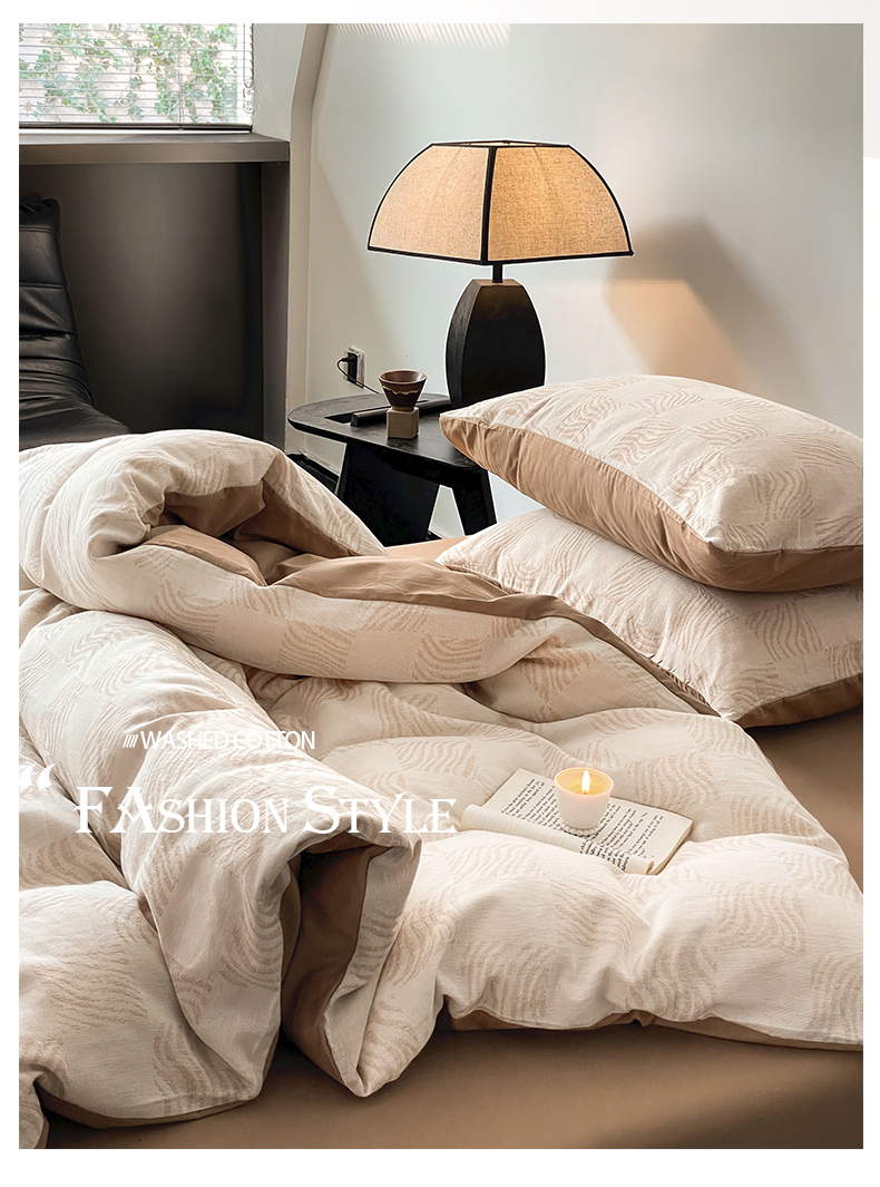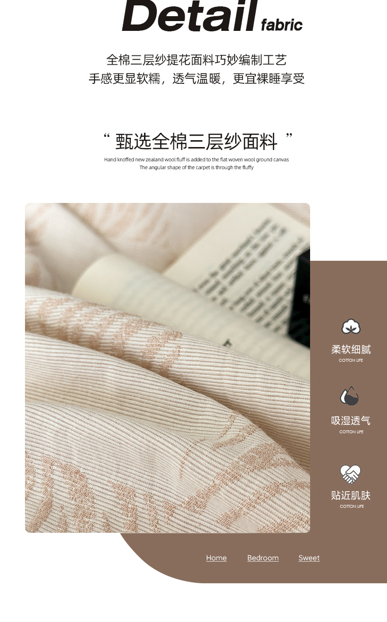 商品名称:苏木年华 2024新款A类全棉三层纱提花四件套--方格系列 方格咖