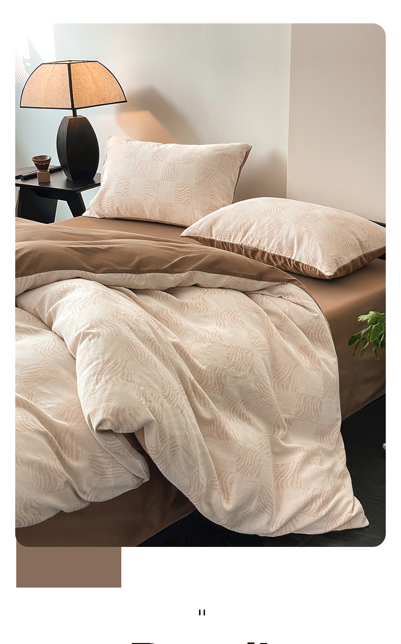 苏木年华 2024新款A类全棉三层纱提花四件套--方格系列 方格咖