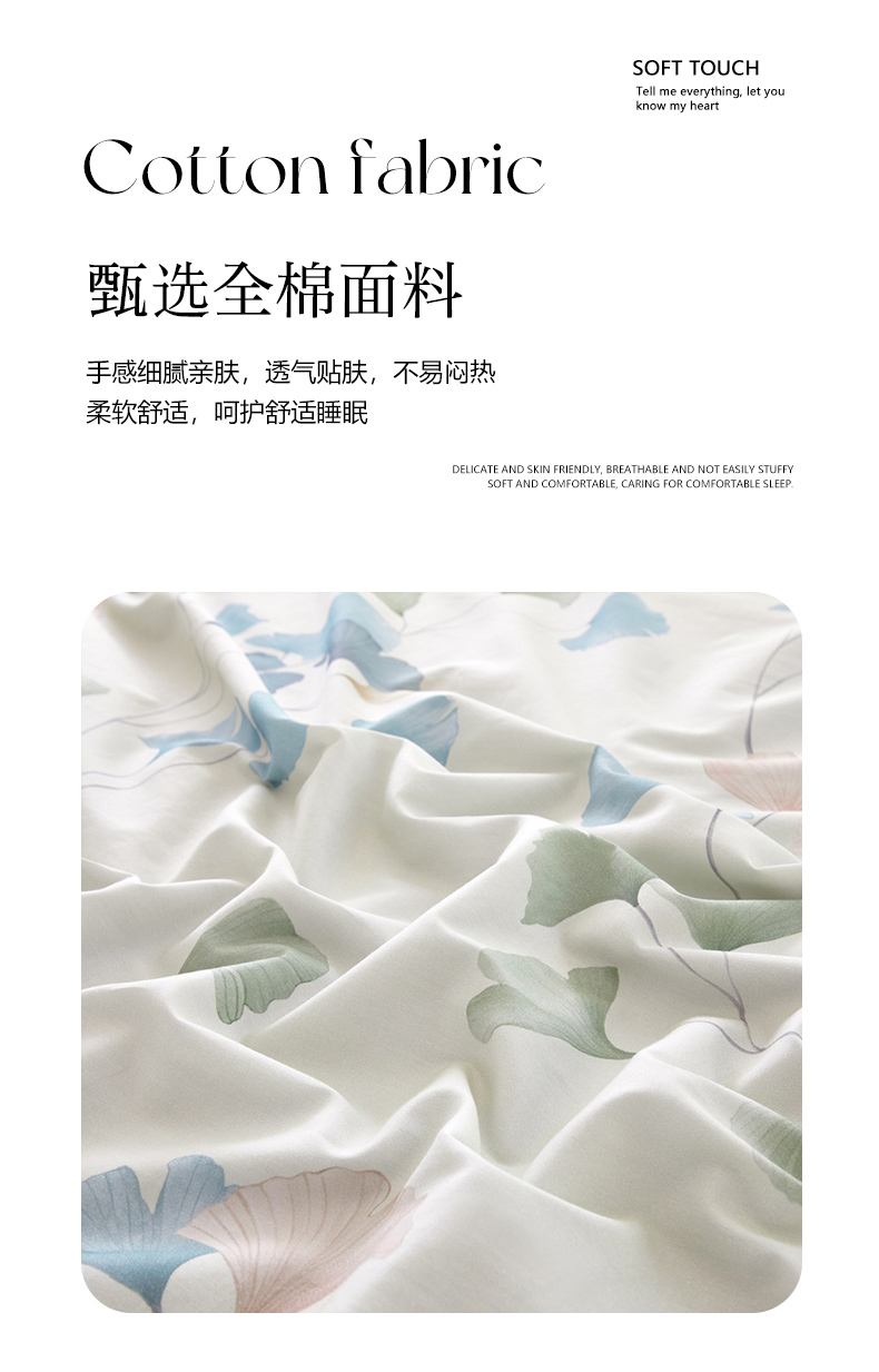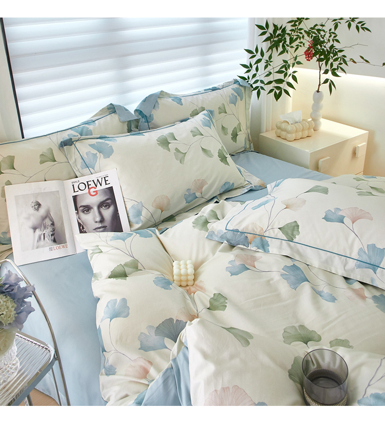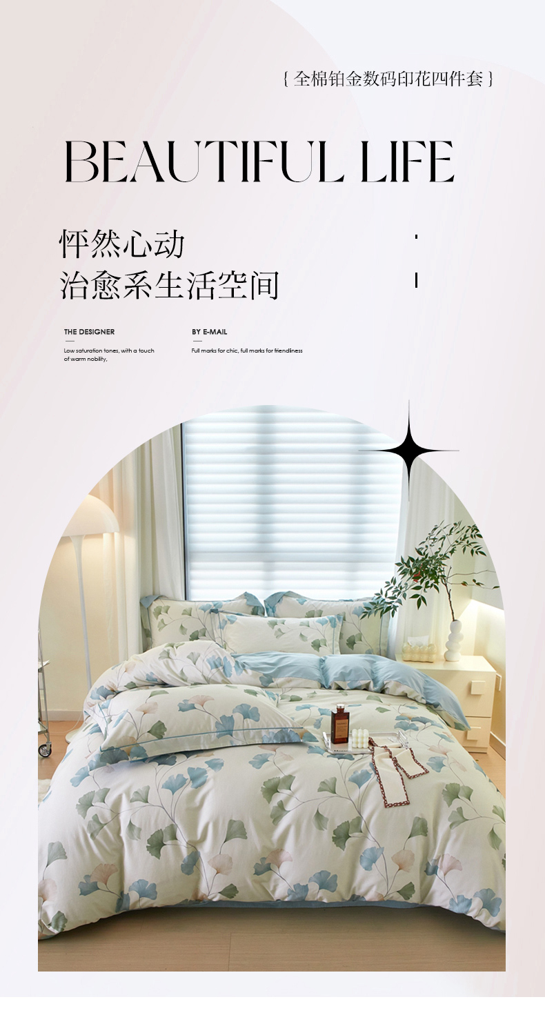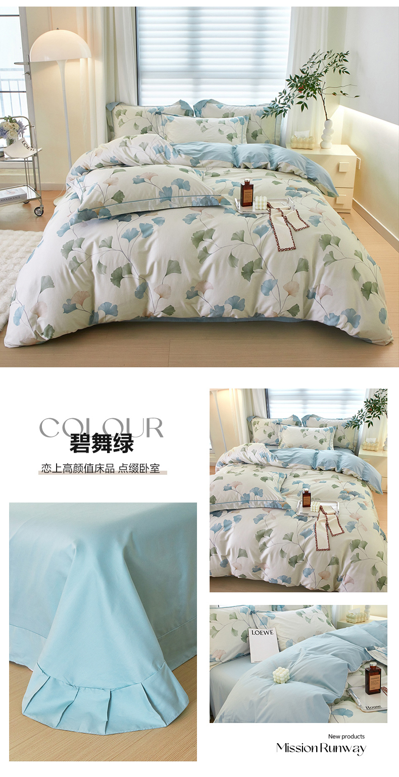 商品名称:启航家居 2025春夏全棉铂金棉数码印花四件套 浅碧舞绿