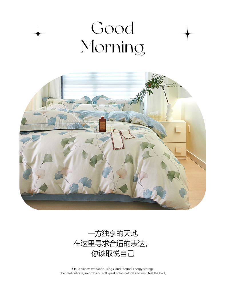 启航家居 2025春夏全棉铂金棉数码印花四件套 浅碧舞绿