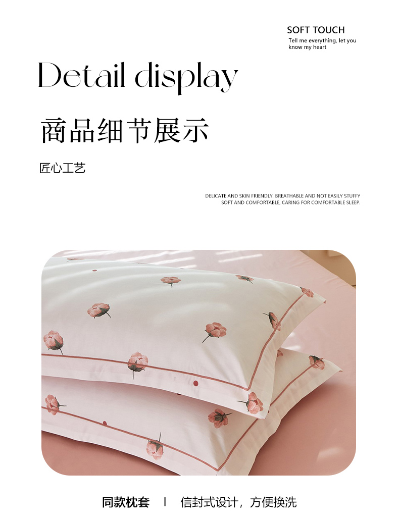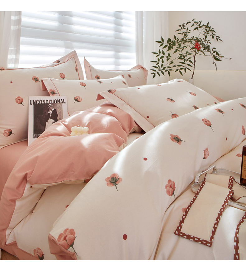 商品名称:启航家居 2025春夏全棉铂金棉数码印花四件套 知否粉