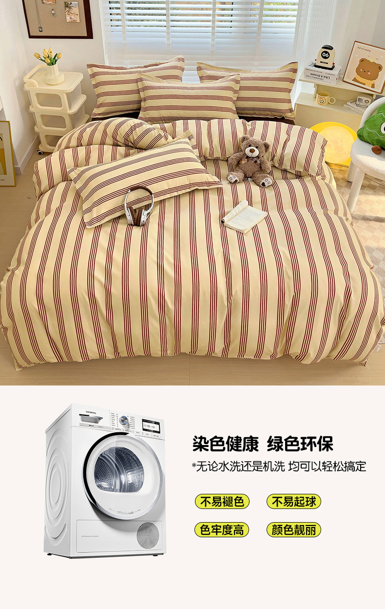 (总)楠沐家纺 2025年新款无印风学生印花四件套芦荟棉水洗棉,彩色波点,觅遇,晴空蓝格,亚麻灰格,烟雾灰格,英伦蓝格