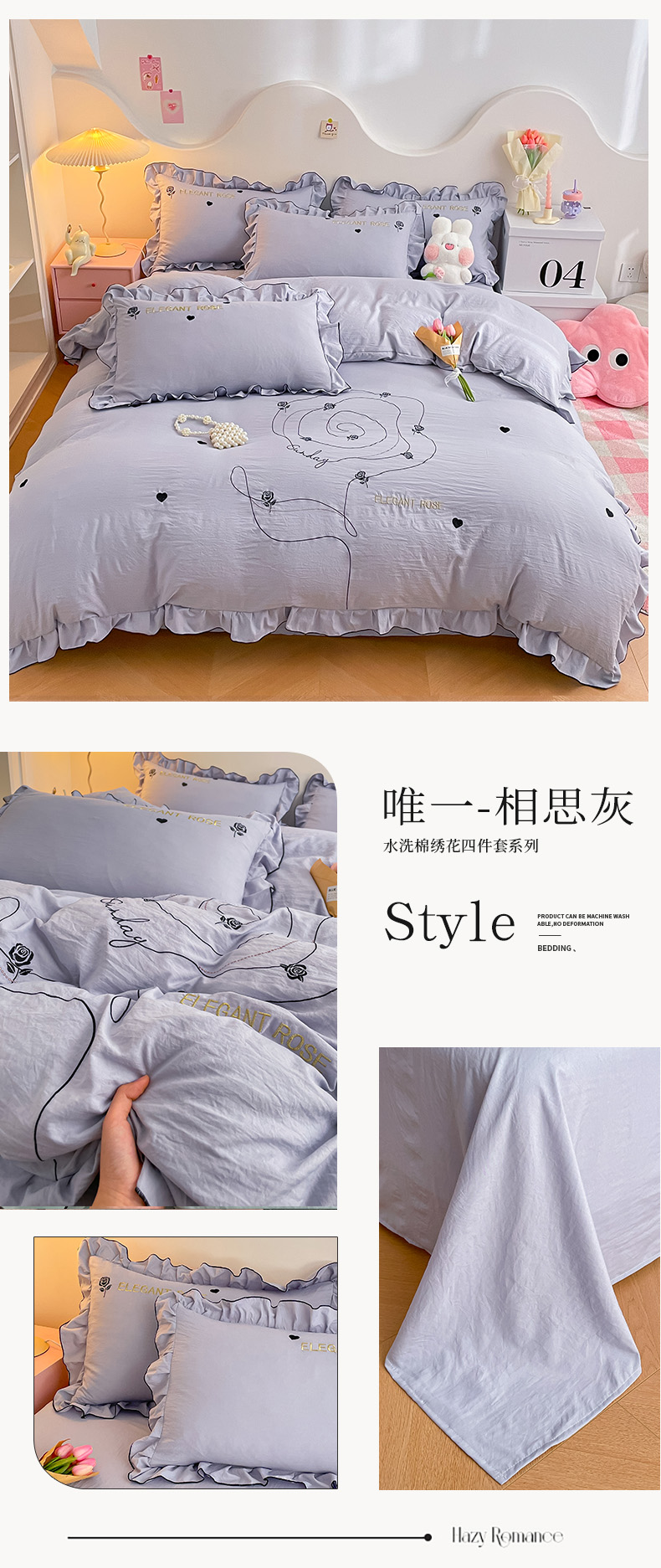 AB家纺 2024新款水洗棉绣花四件套-唯一系列 唯一相思灰