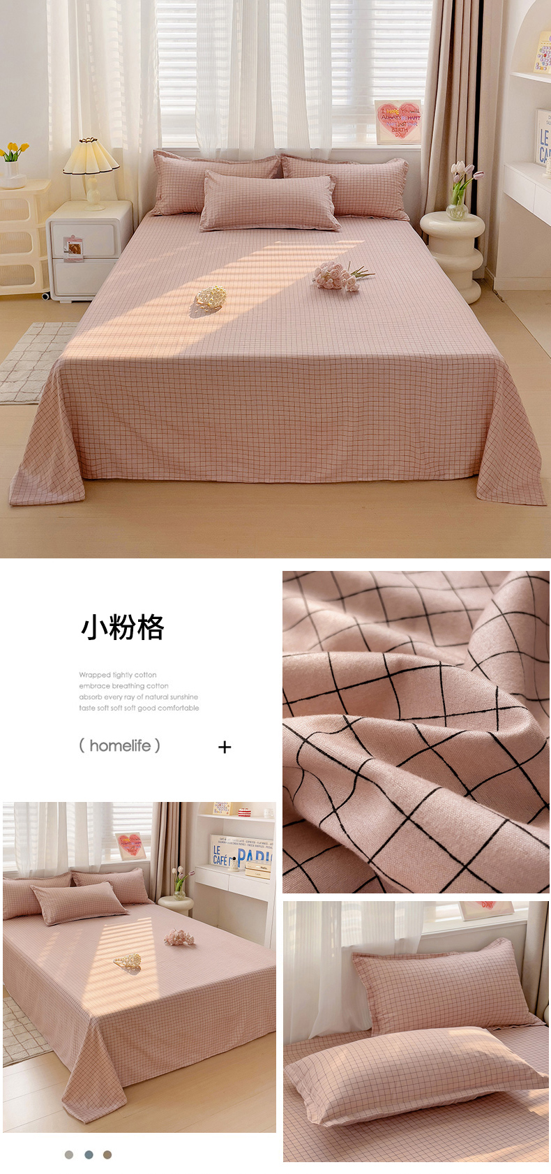 楠沐家纺 2025年新款亲肤水洗棉芦荟棉印花床单系列 小粉格