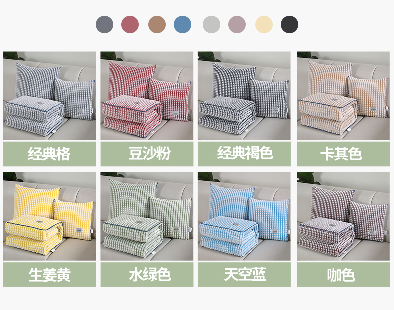 (总)吉利家居 2025新款全棉色织水洗抱枕被-卡皮巴拉 控价小号65 大号92,组合图仅做展示,海盐蓝,咖小格,粉青年,巴洛灰,芸素咖,蓝芋格,芝士黄,初恋格,洛可蓝,小黑格