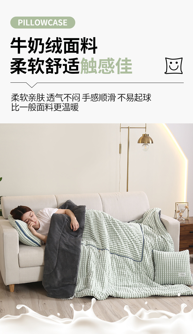 (总)2025款牛奶绒多功能抱枕被-玫瑰绒语,宝石蓝,橄榄绿,柠檬黄,绅士灰,天空蓝,香芋紫