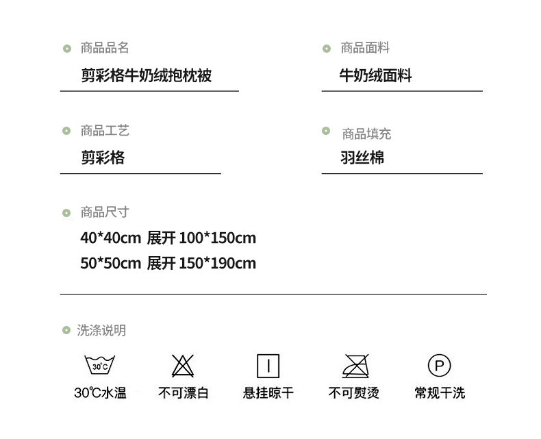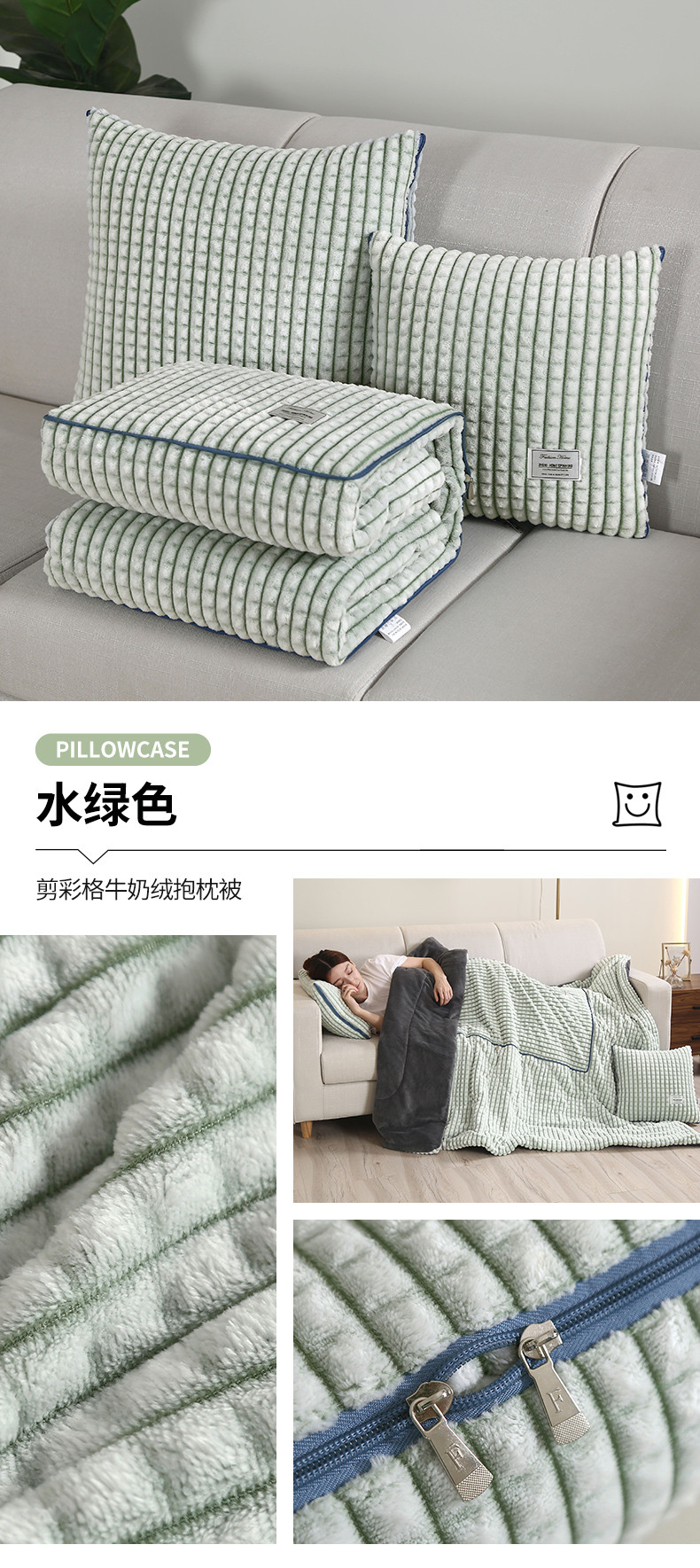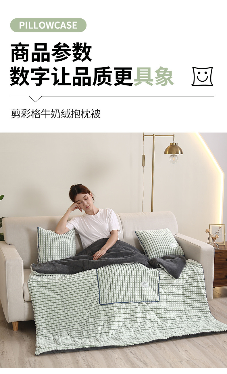 商品名称:吉利 2023新款剪彩格牛奶绒抱枕被水绿色