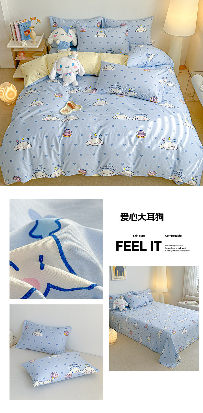当前位置: 91家纺网 > 商品网购 > 床品套件 > 四件套 > 全棉活性四件套 > 爱丽丝 新款全棉三丽鸥新品系列-四件套(含5元防伪码) 爱心大耳狗
