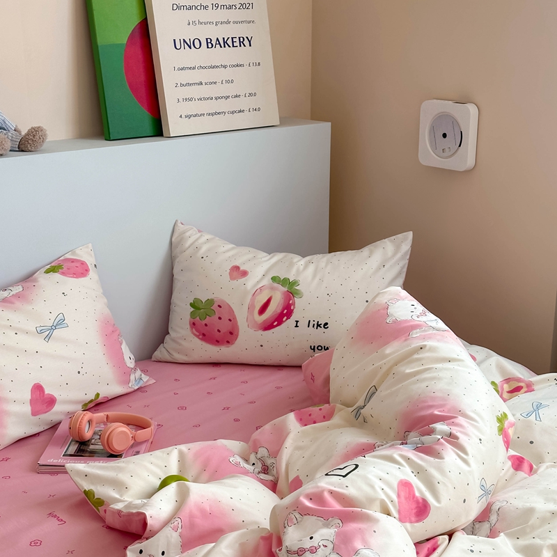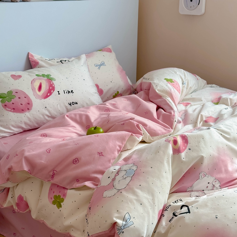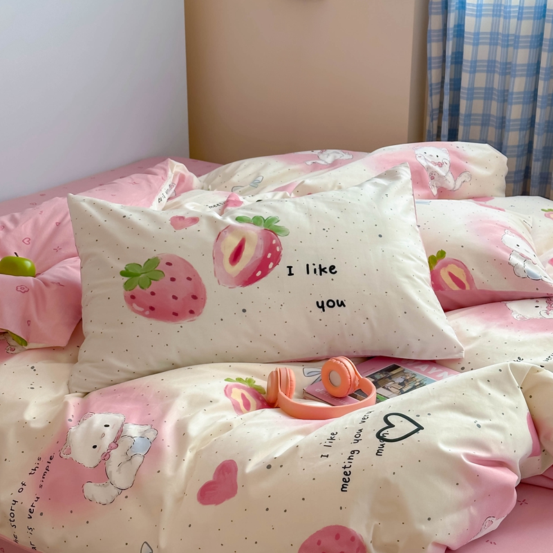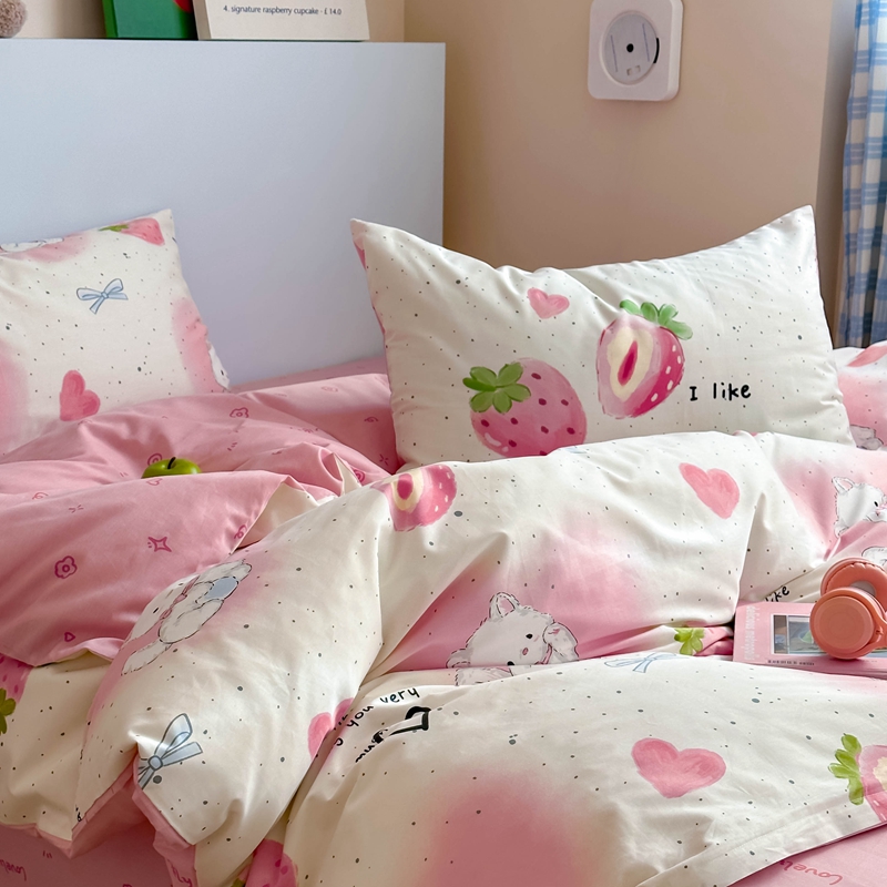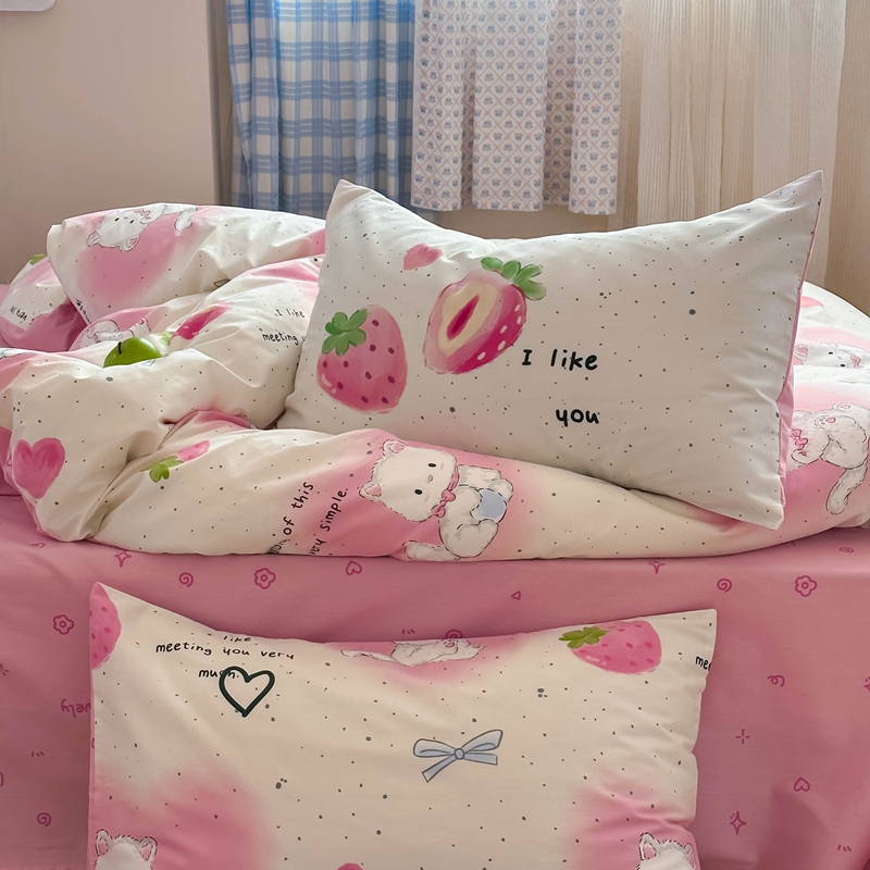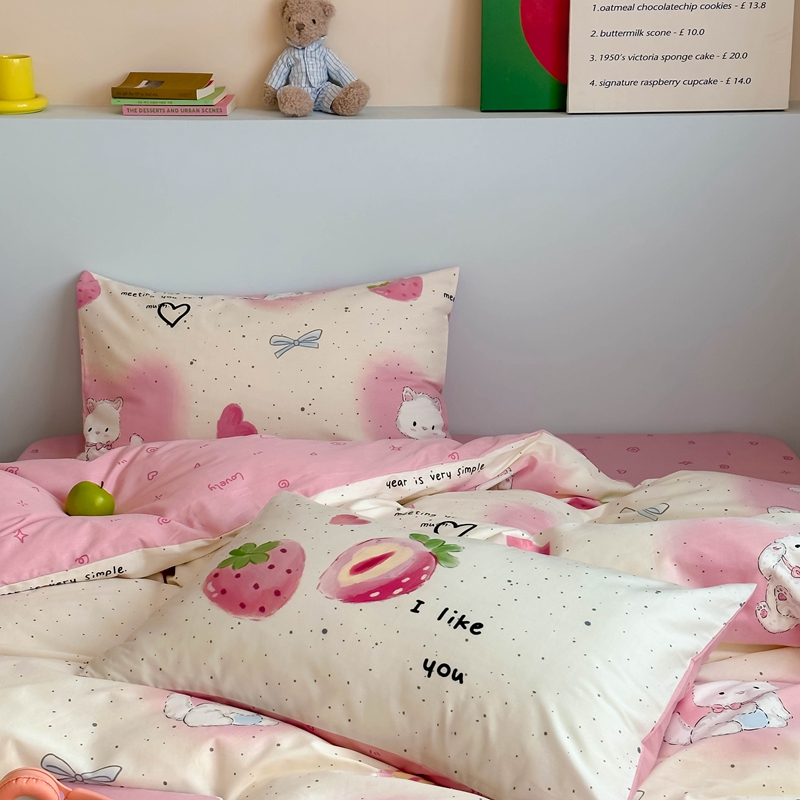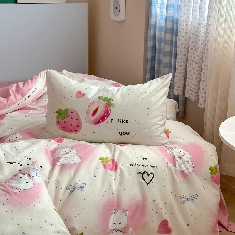 商品名称:时年 2024新款全棉数码大版趣味系列四件套 草莓喵