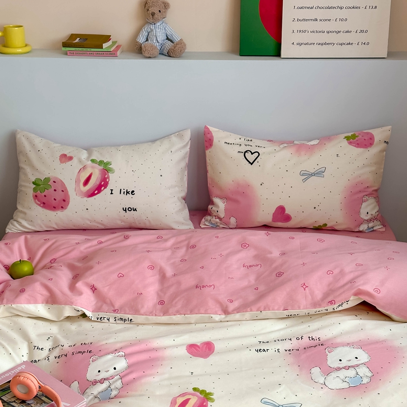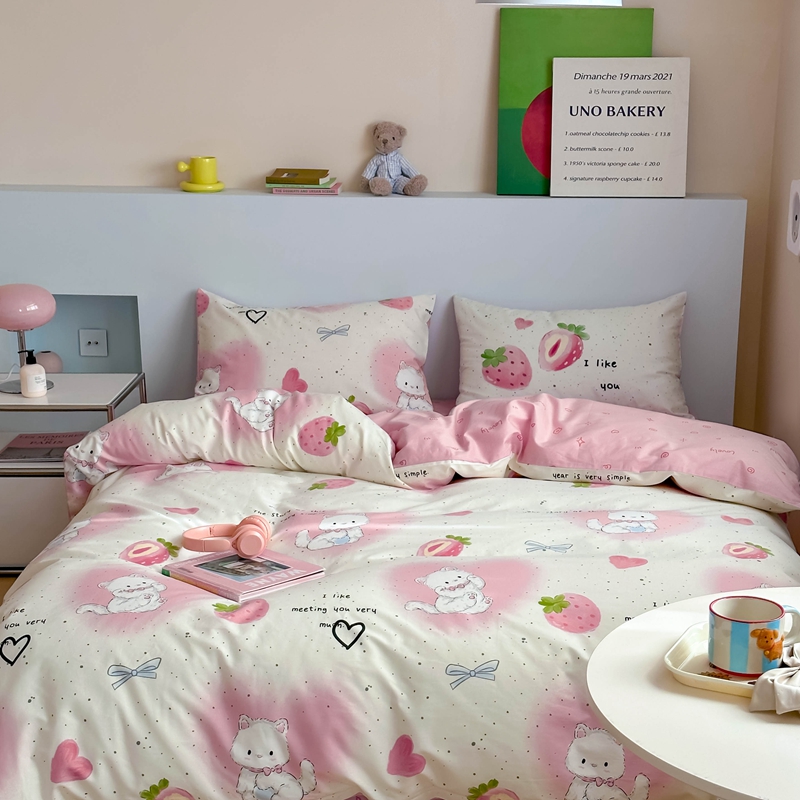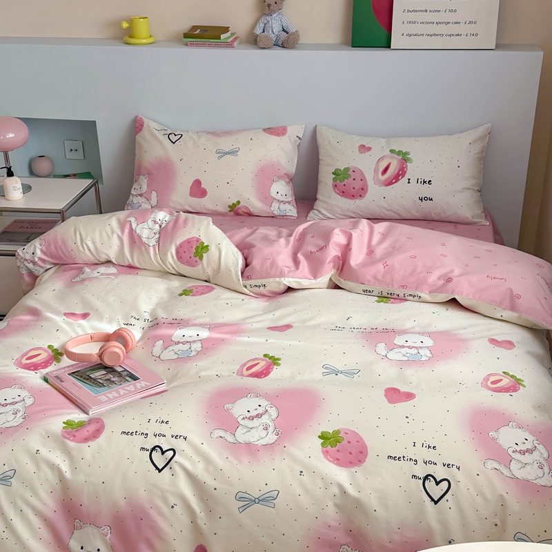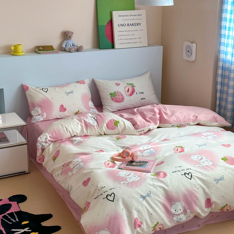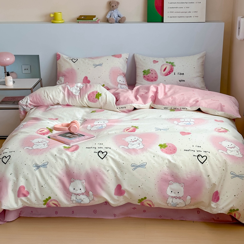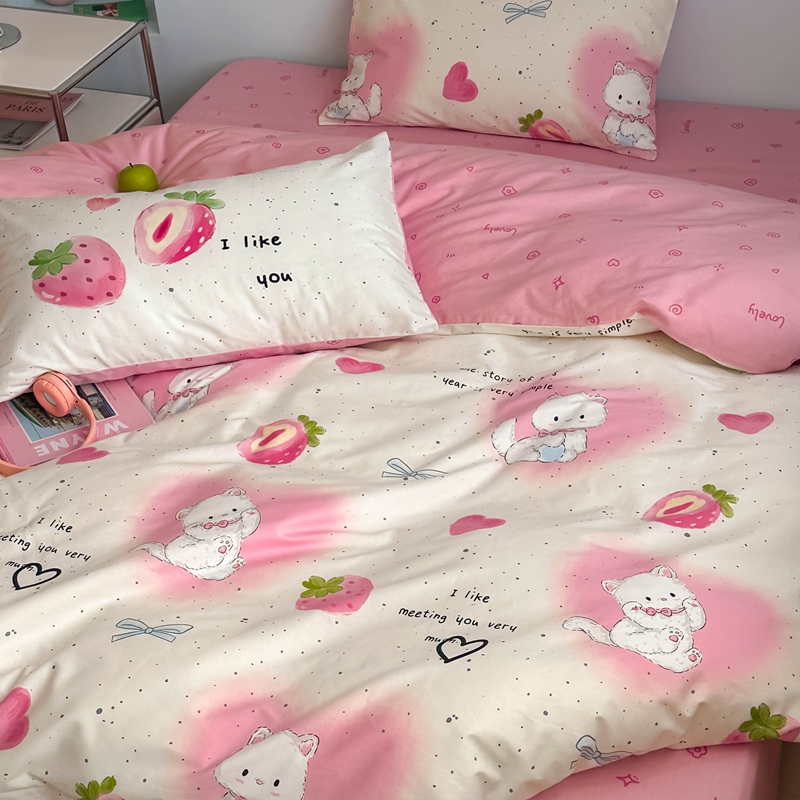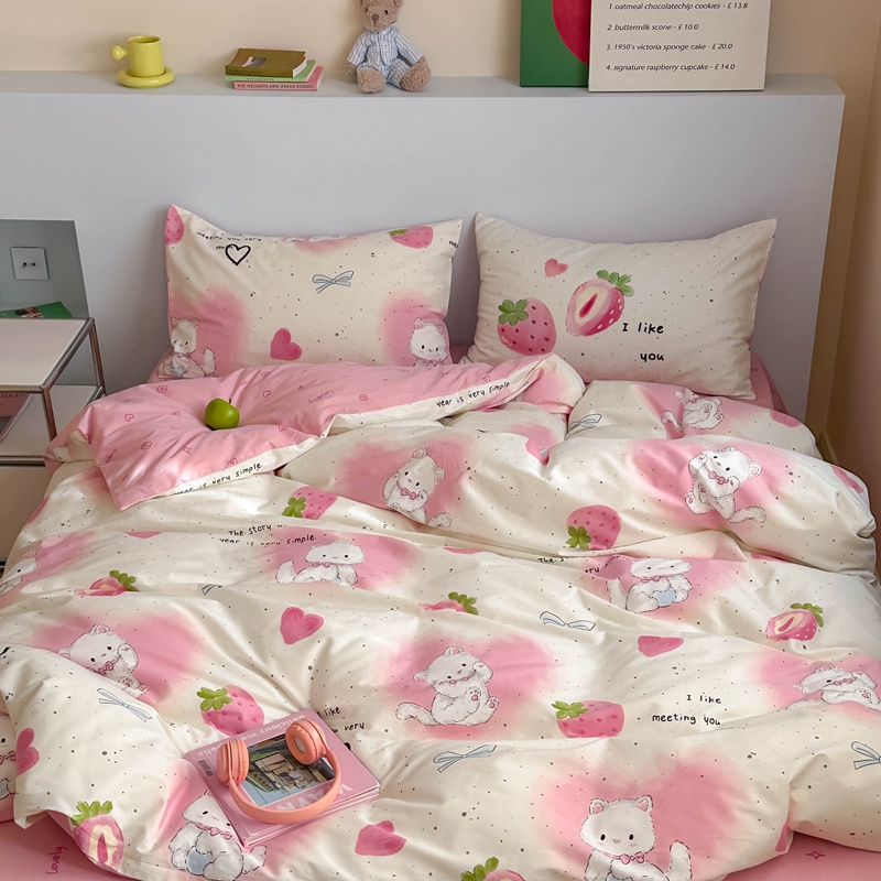 时年 2024新款全棉数码大版趣味系列四件套 草莓喵