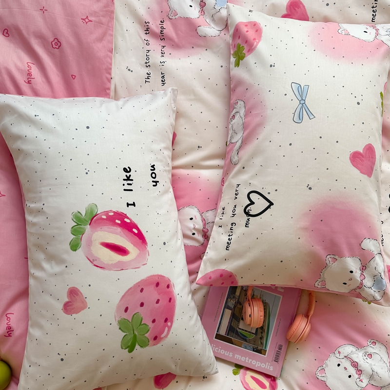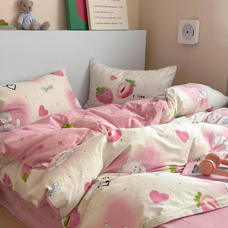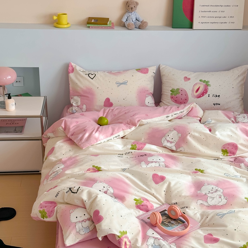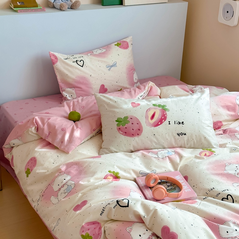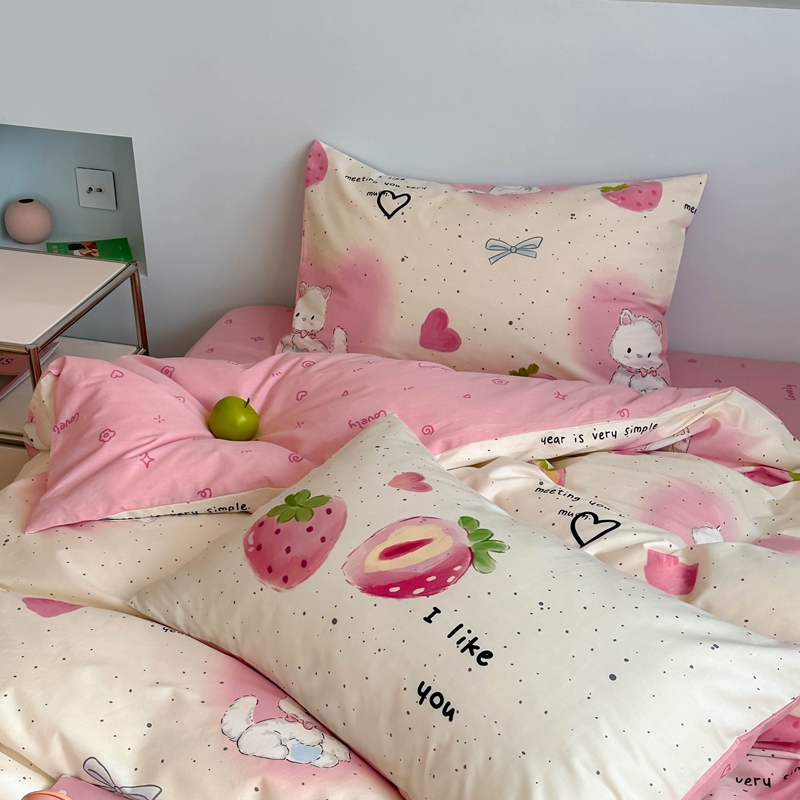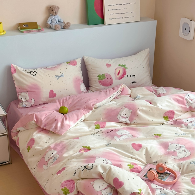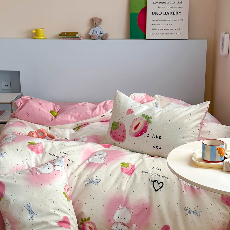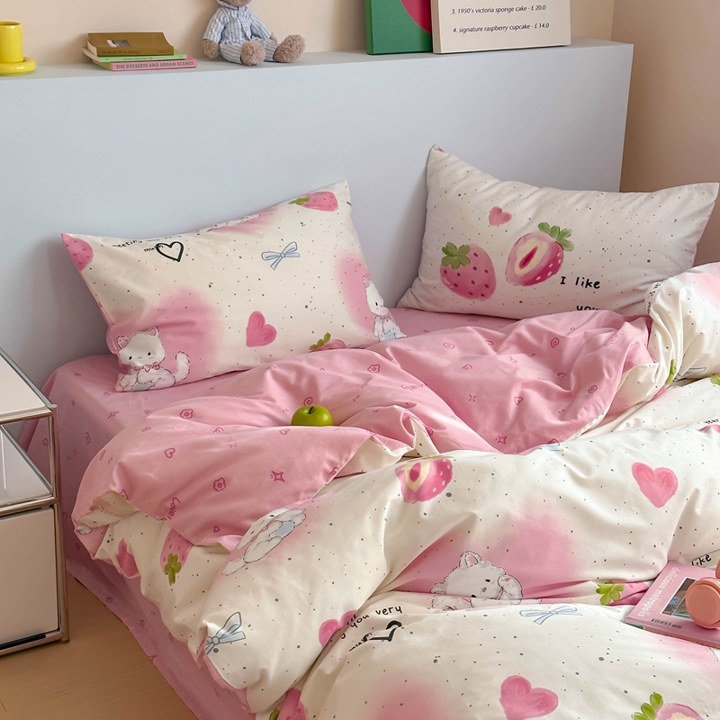 时年 2024新款全棉数码大版趣味系列四件套 草莓喵