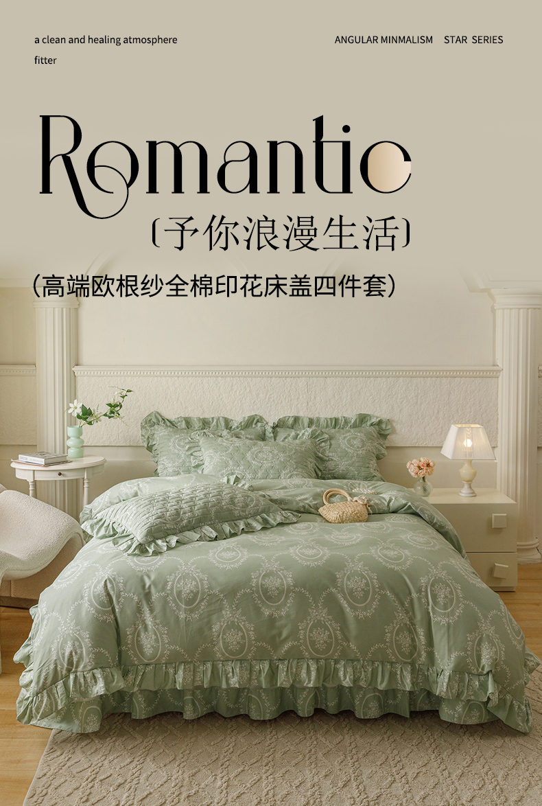 (总)菊上家纺 2023秋冬新品法式花边全棉床盖四件套,安妮紫,花千骨,小欢喜,布拉格,罗蔓莉,玛雅灰,小幸运,卡町绿,恋花影,薇薇安