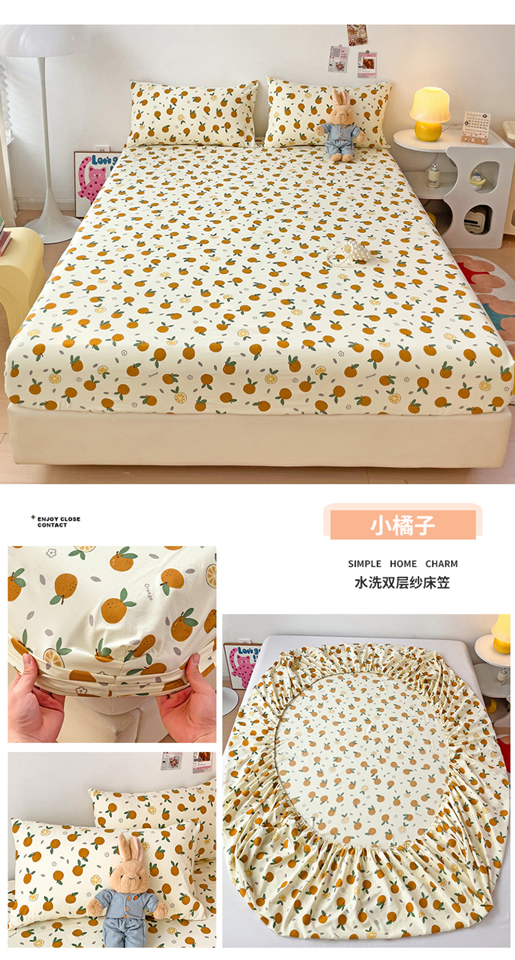 商品名称:纽缦家纺 2024水洗双层纱单床笠 小橘子