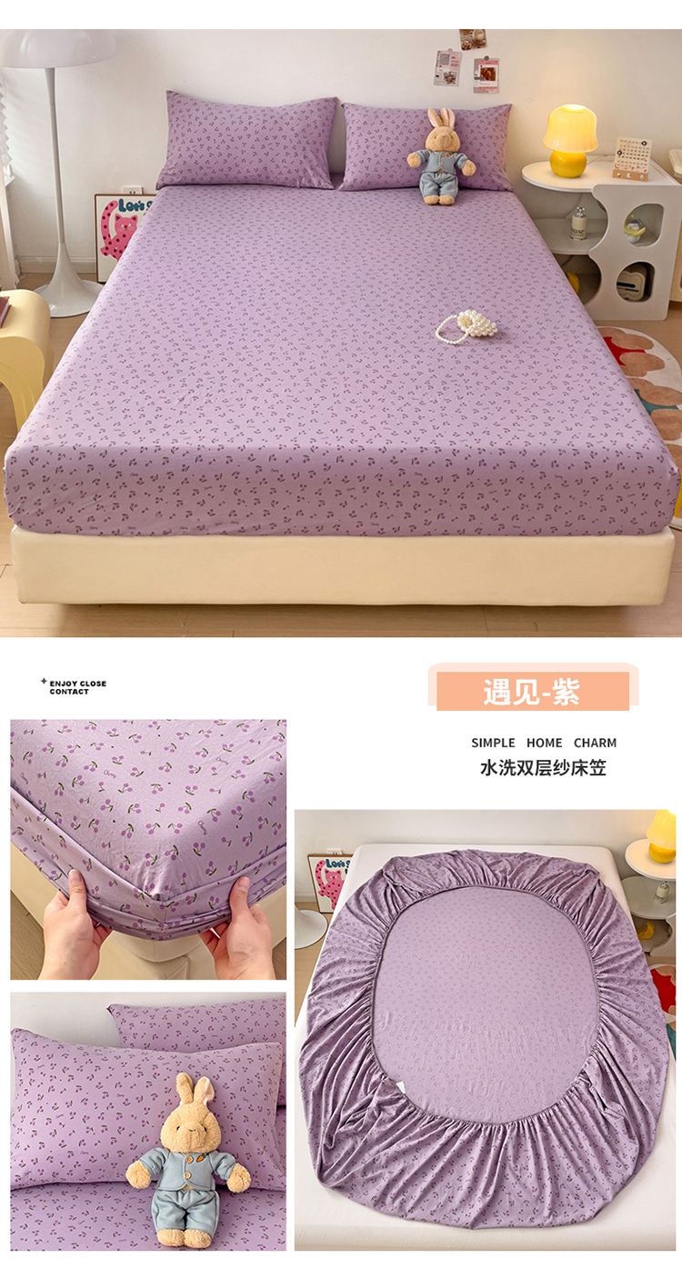 商品名称:纽缦家纺 2024水洗双层纱单床笠 遇见紫