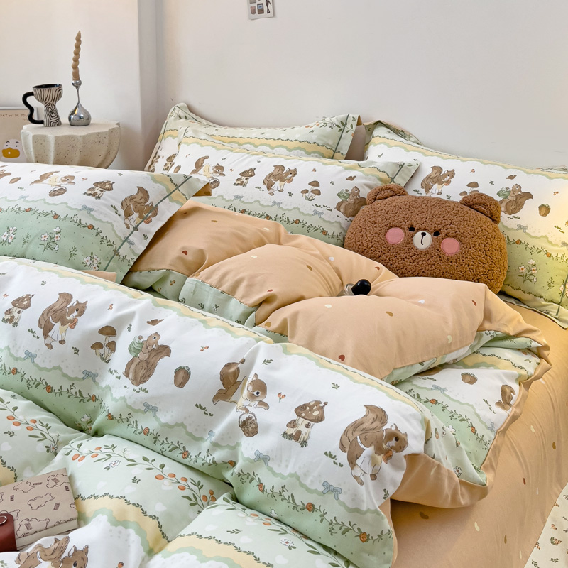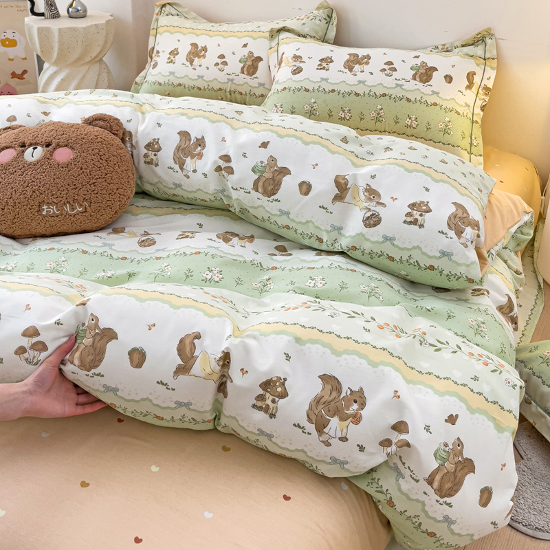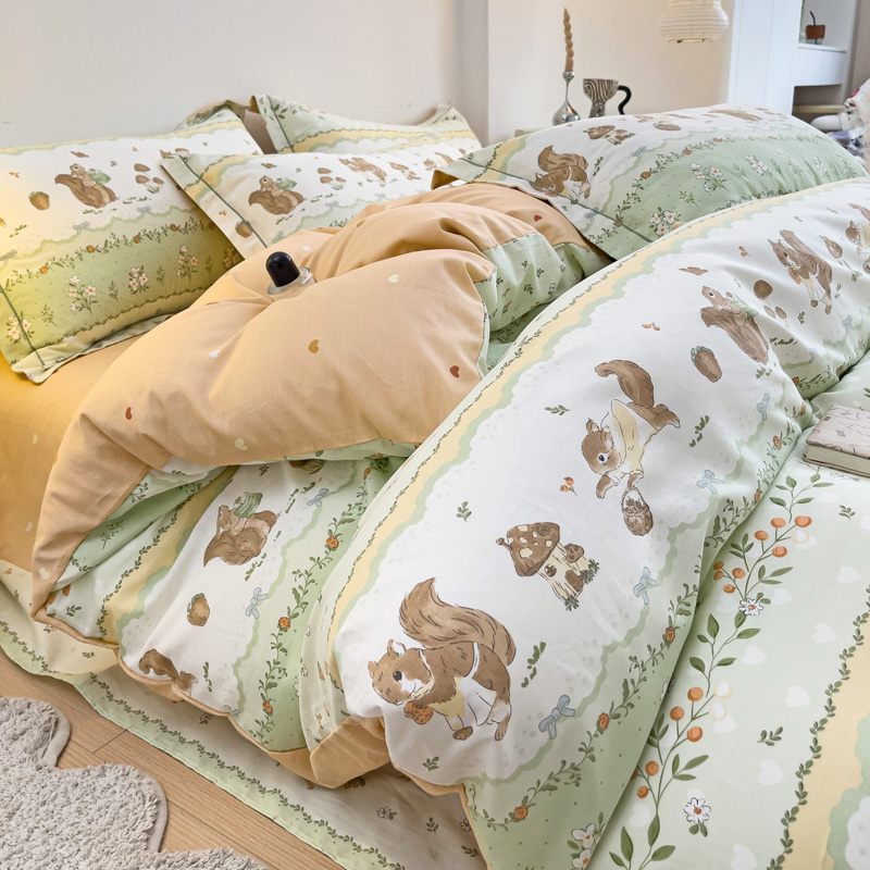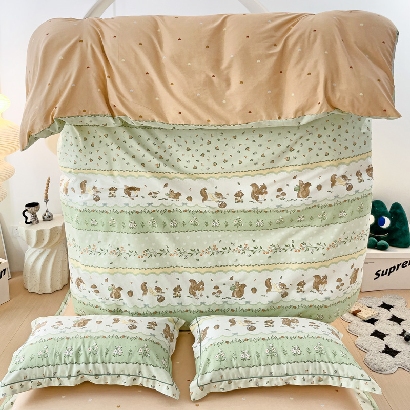 商品名称:云锦家居 2024新款13070纯棉印花吊边款一字绣四件套 田园森林