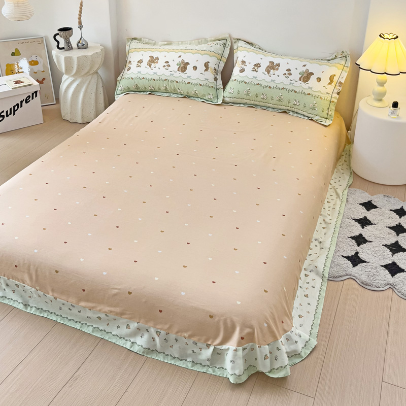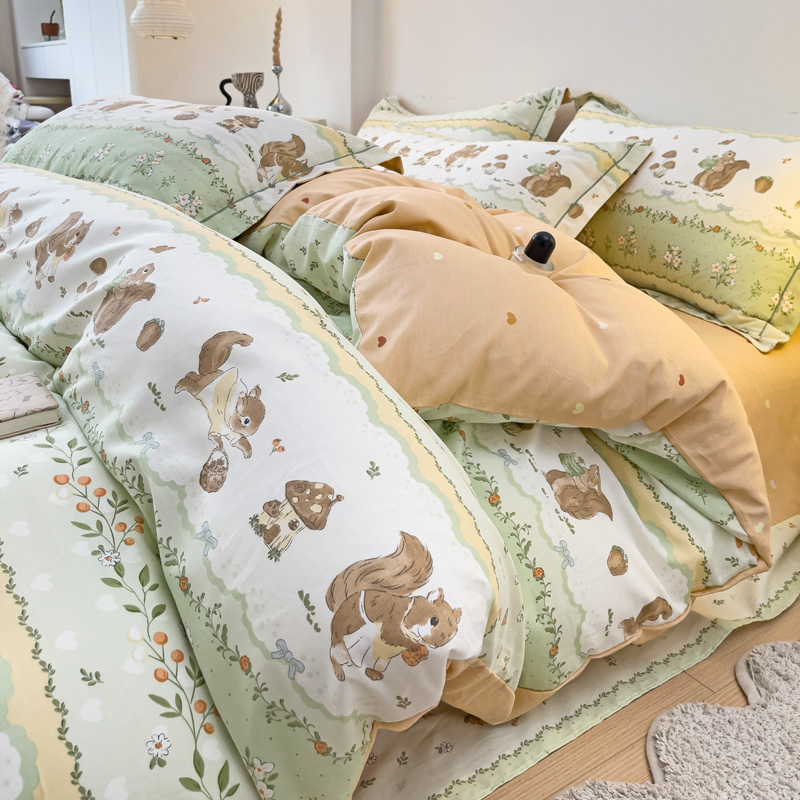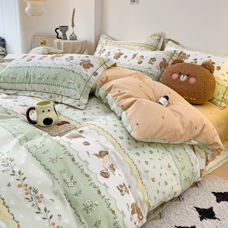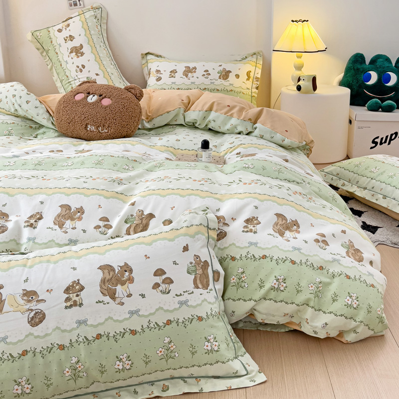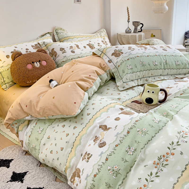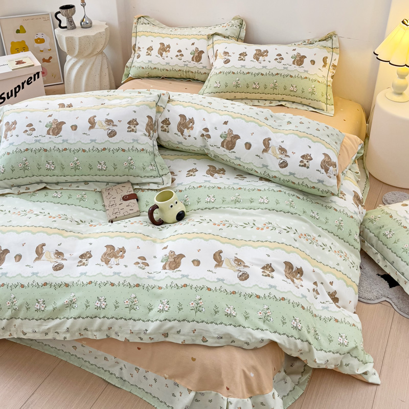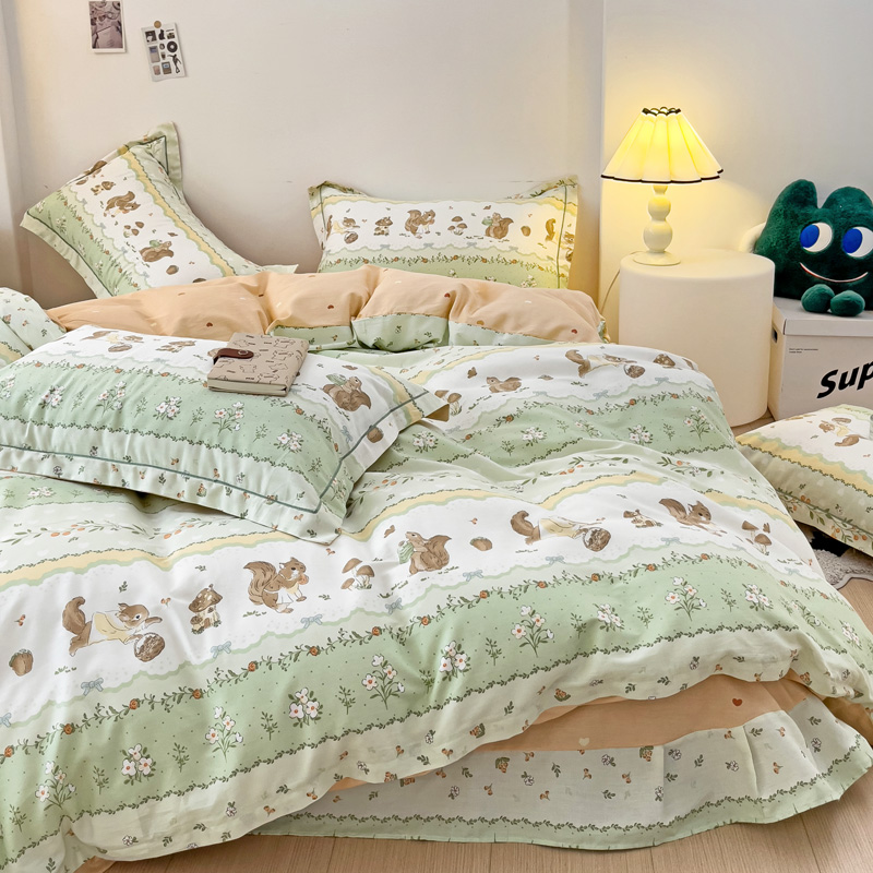 云锦家居 2024新款13070纯棉印花吊边款一字绣四件套 田园森林