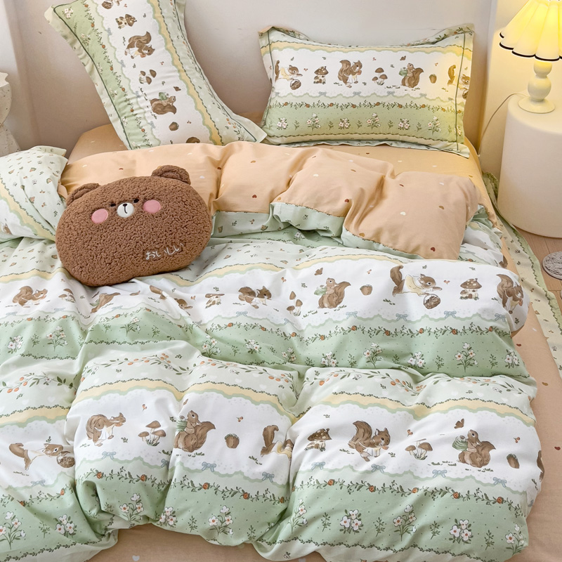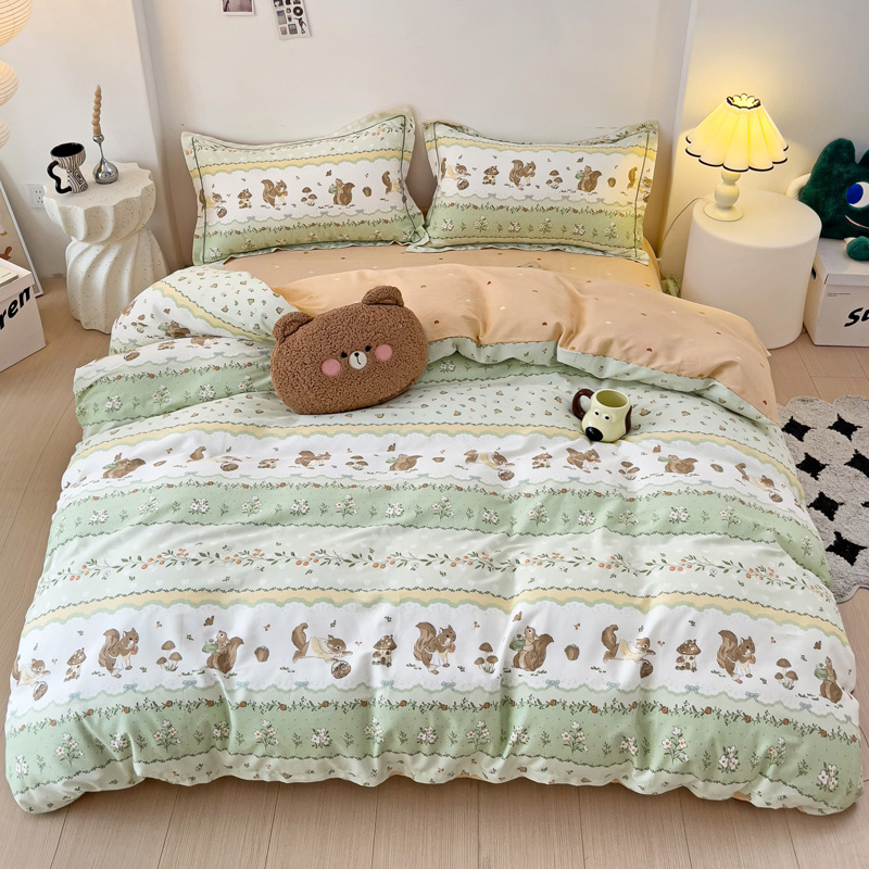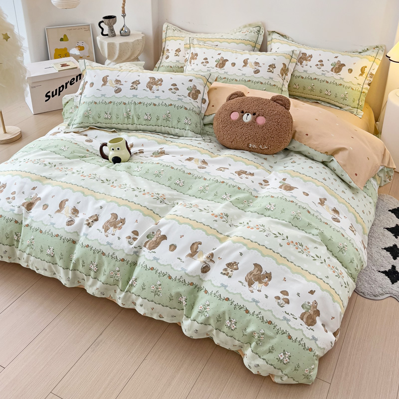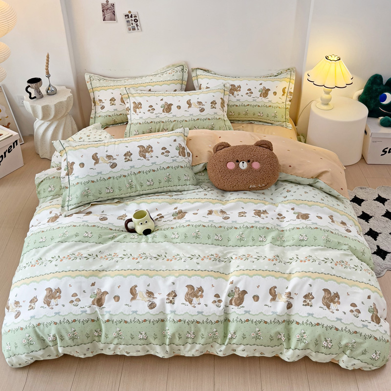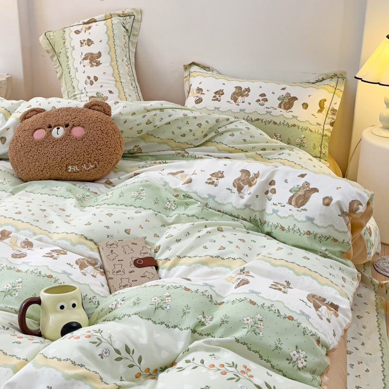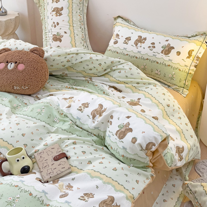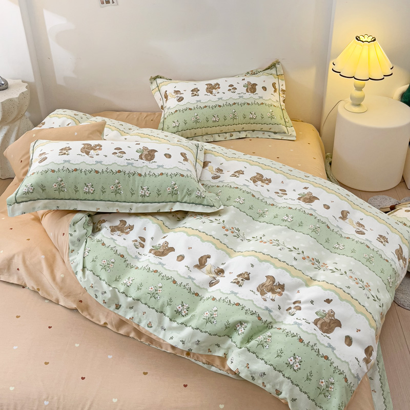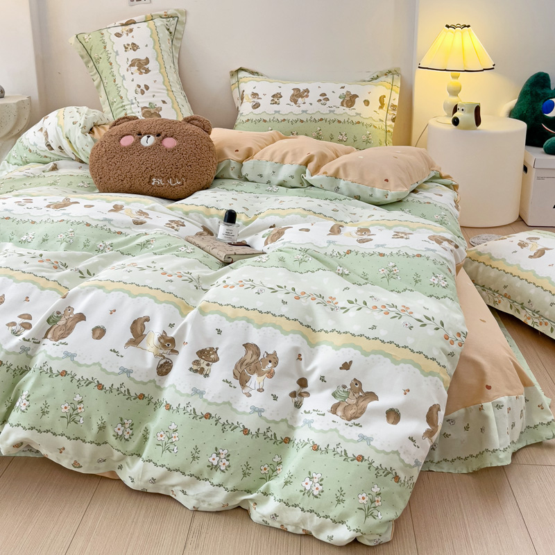 云锦家居 2024新款13070纯棉印花吊边款一字绣四件套 田园森林