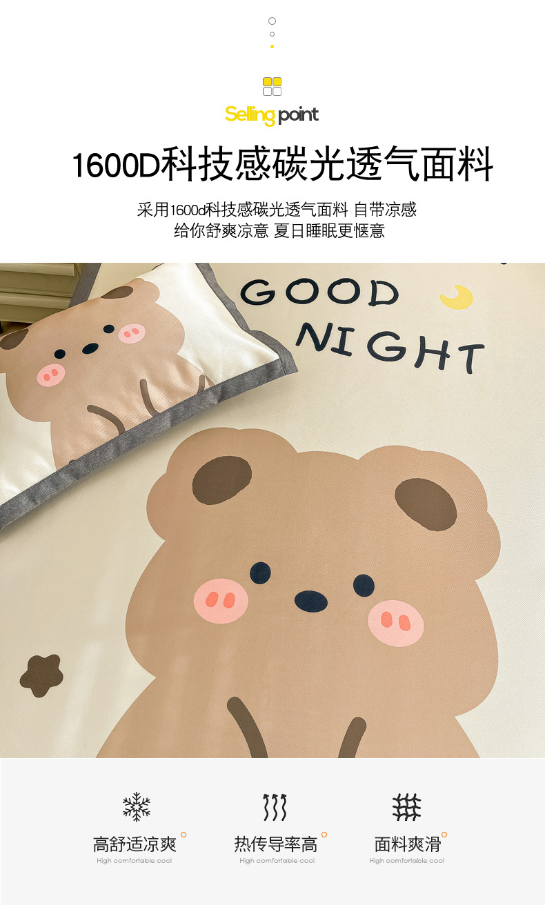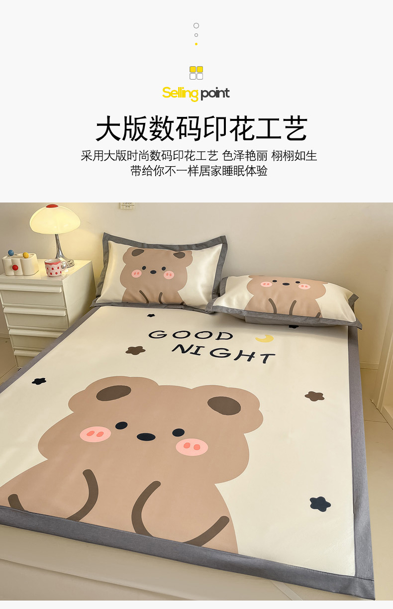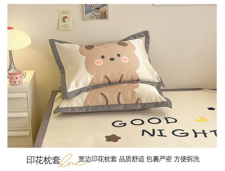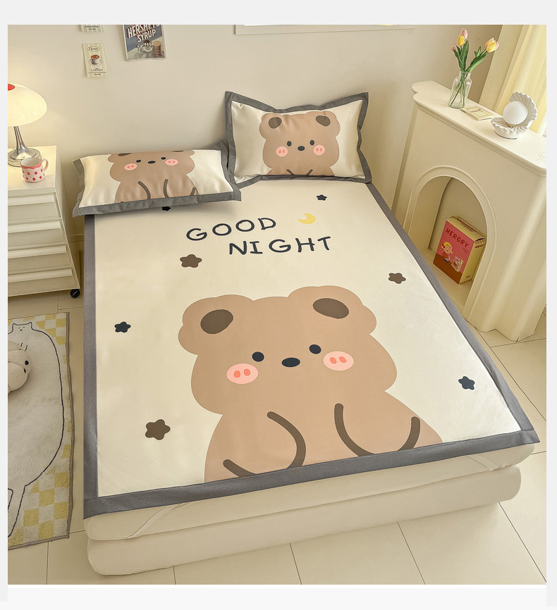 商品名称:柒月 2024新款大版数码印花1600D加厚碳光冰丝席 晚安熊