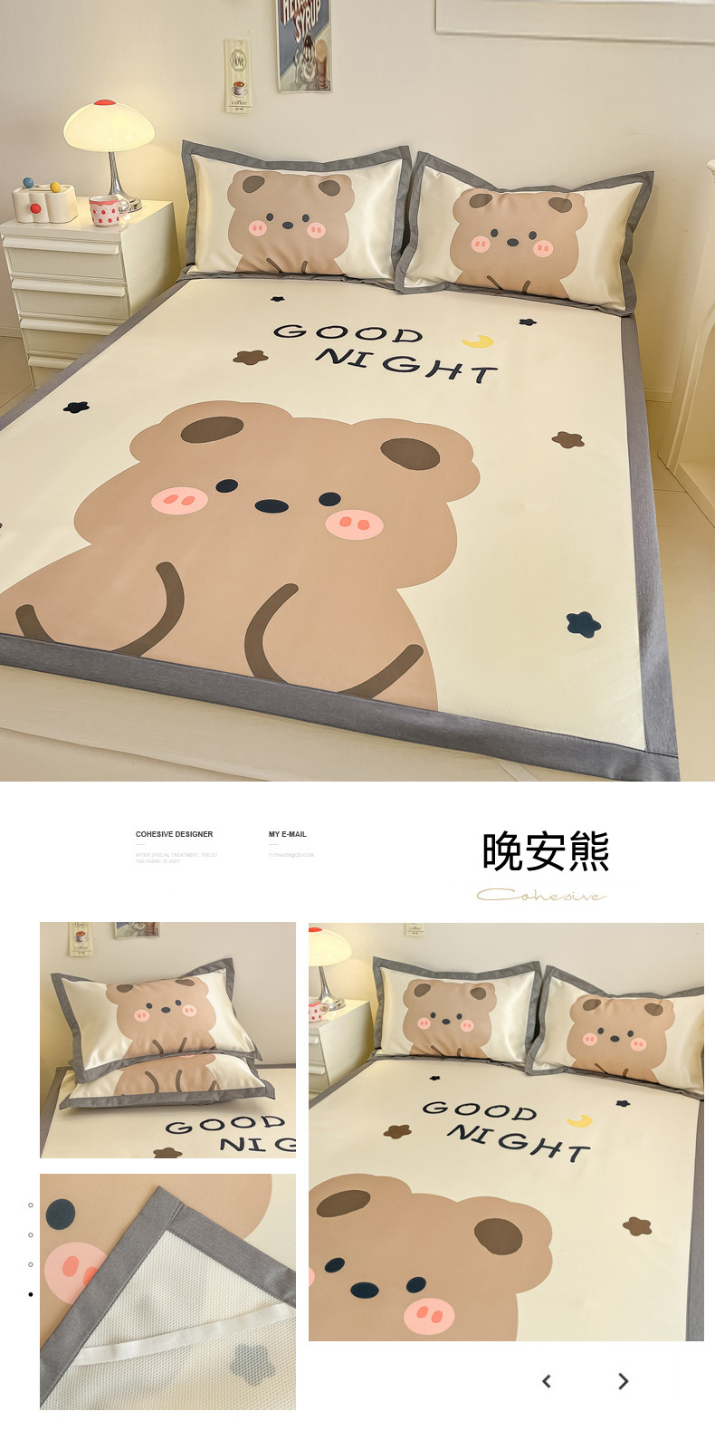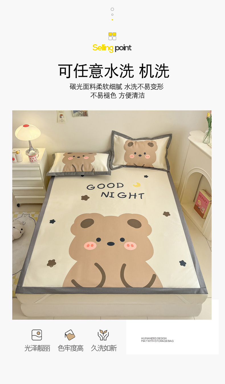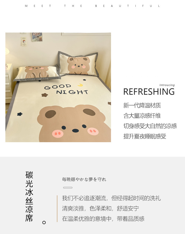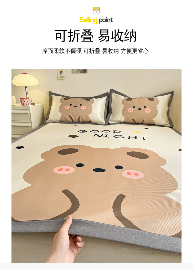 商品名称:柒月 2024新款大版数码印花1600D加厚碳光冰丝席 晚安熊
